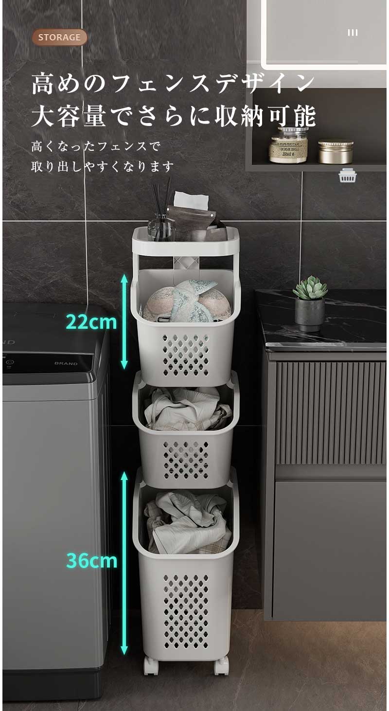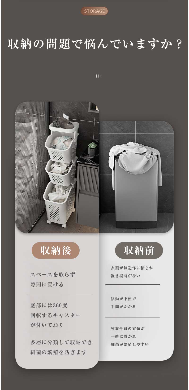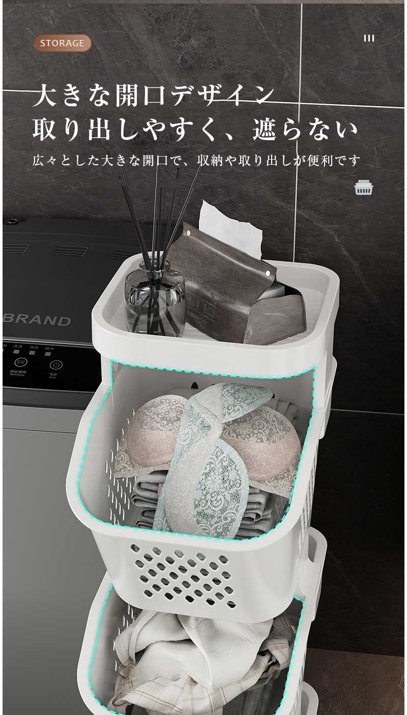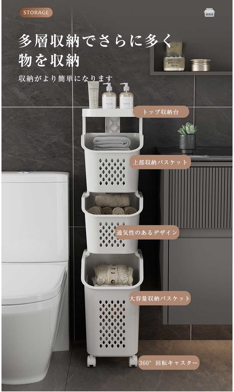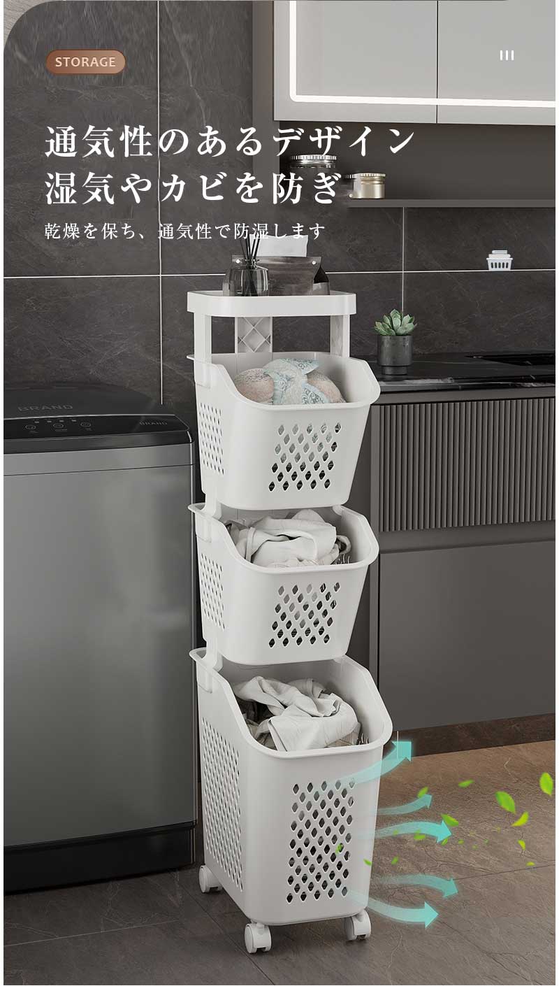 ランドリーバスケット 1- 4段 キャスター付き ランドリーカート ランドリーワゴン スタッキングバスケット 洗濯かご ランドリーラック 洗濯カゴ 洗濯物入れ 脱衣カゴ 収納 ランドリー収納 浴 脱衣