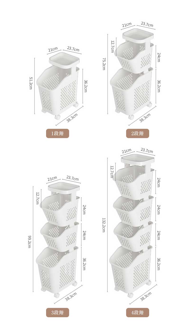 ランドリーバスケット 1- 4段 キャ 1層 2層 3層 4層