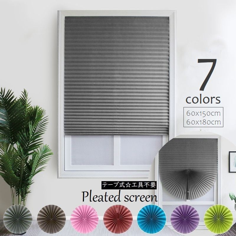 プリーツスクリーン ブラインド 不織布 60×150cm 60×180cm ピンク レッド グレー ブラウン ブルー グリーン パープル