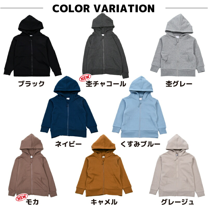 子供服 パーカー ジップパーカー 男の キッズ トップス パーカー 続々入荷中 ブラック 杢グレー アイボリー ネイビー グレージュ くすみミント くすみピンク くすみブルー キャメル パープル 杢チャコール モカ テラコッタ ラベンダー カーキ 90cm 100cm 110cm 120cm 130cm 140cm 150cm