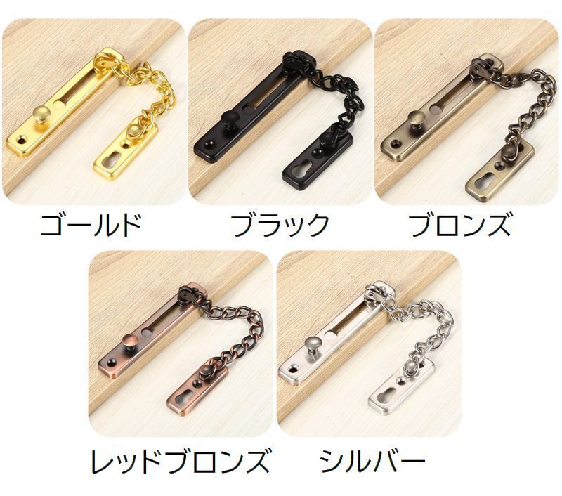 ドアチェーン ロック 鍵 補助錠 防犯 ゴールド レッドブロンズ ブラック シルバー ブロンズ