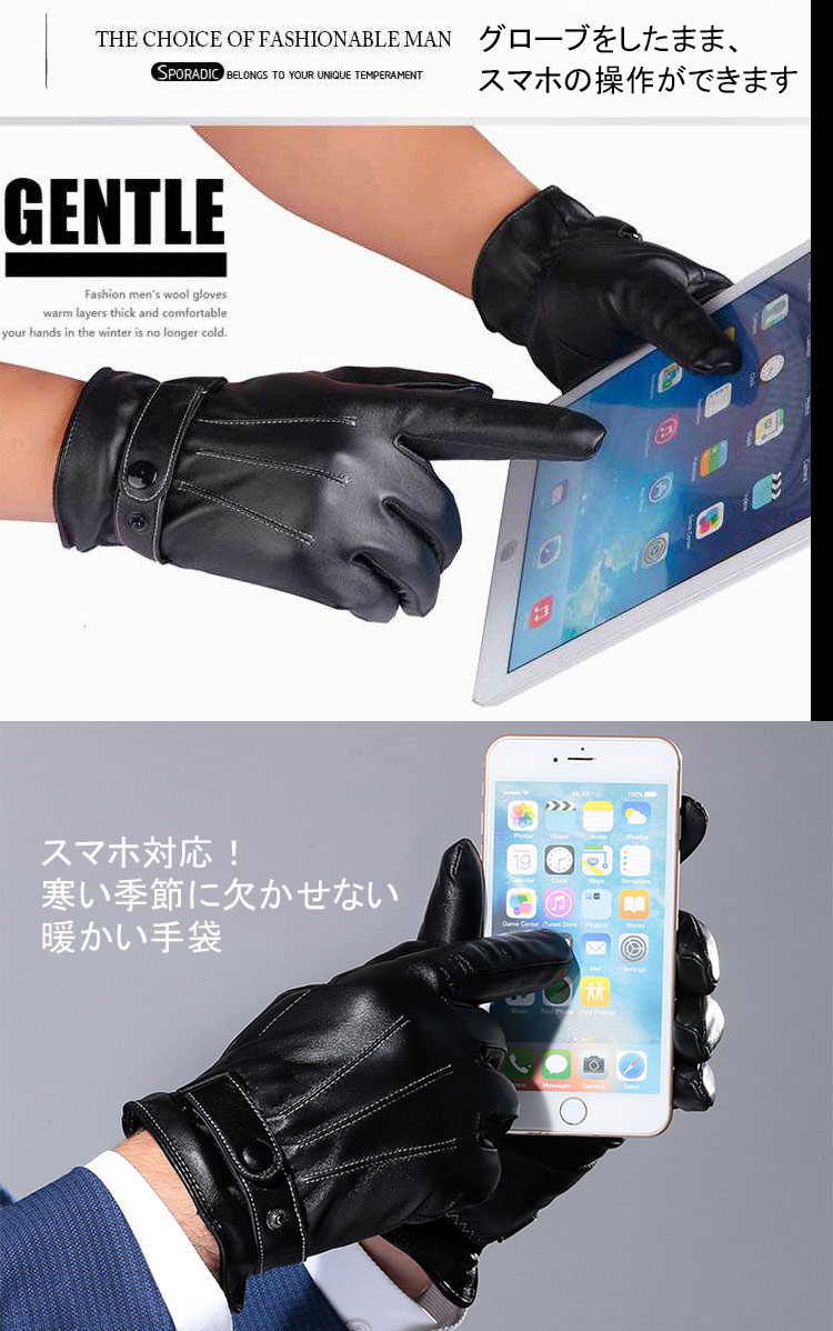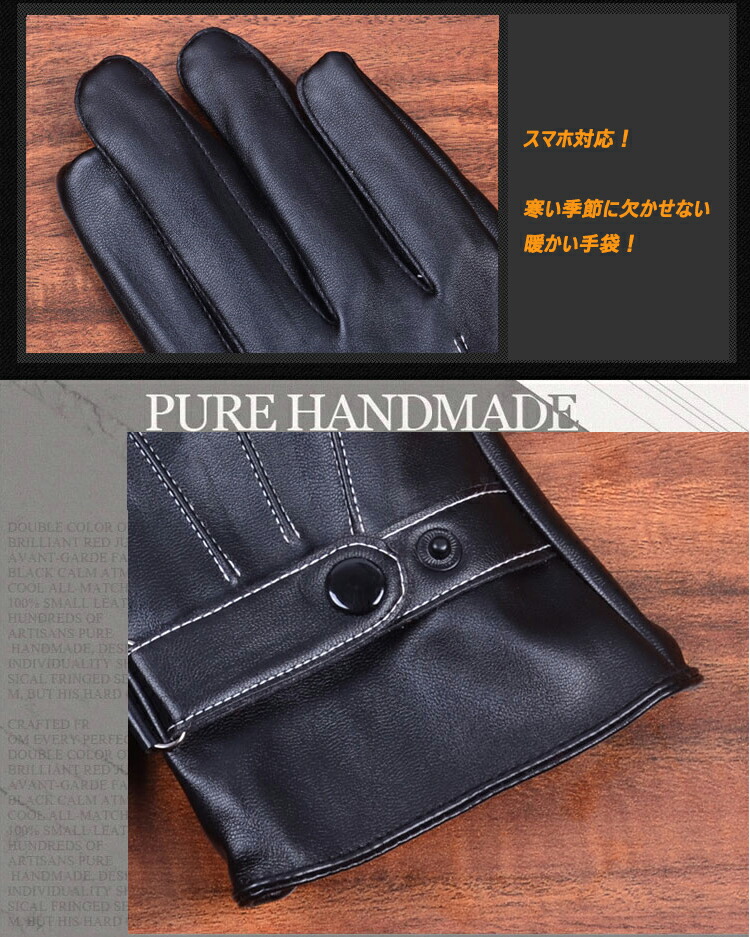 手袋 メンズ レザー スマホ対応 裏起毛 レザーグローブ 革手袋 フェイクレザー 革グローブ 液晶タッチ タッチバネル対応 秋冬用 防寒 保温性 紳士 通勤 ビジネス 父の日 クリス 通学