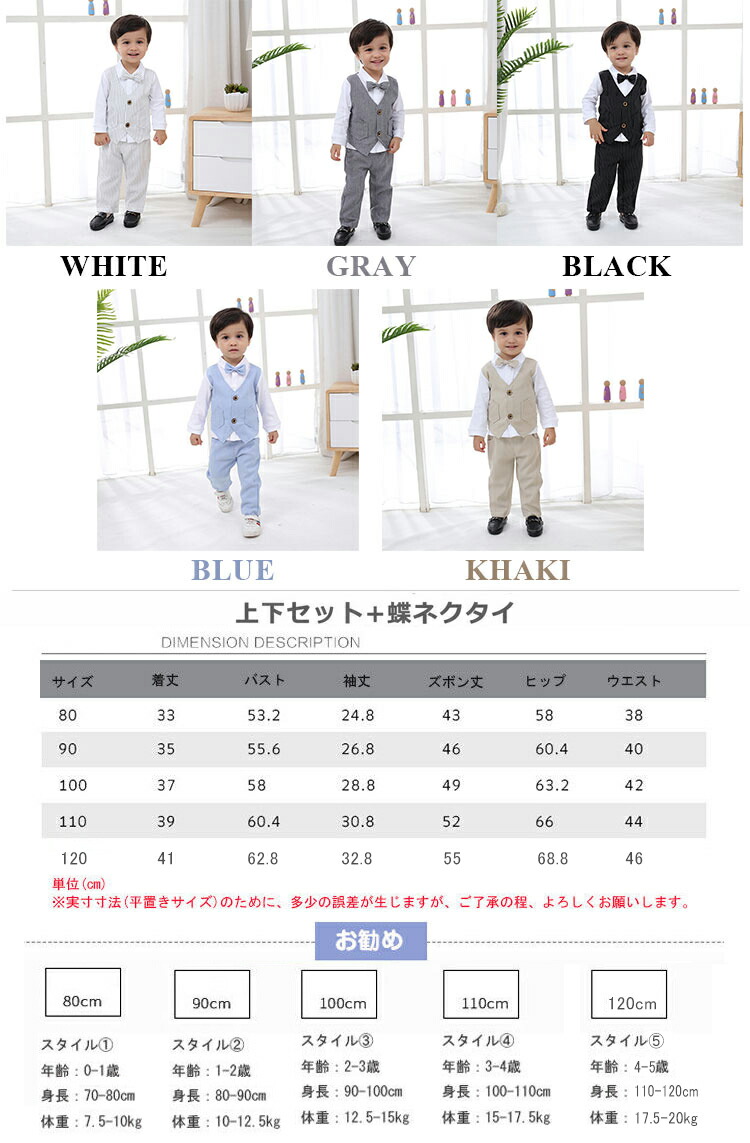 子供服 フォーマルスーツ ベビータキシ キッズ スーツ カジュアルセットアップ 礼服 通販 KHAKI BLUE WHITE GRAY BLACK 80 90 100 110 120