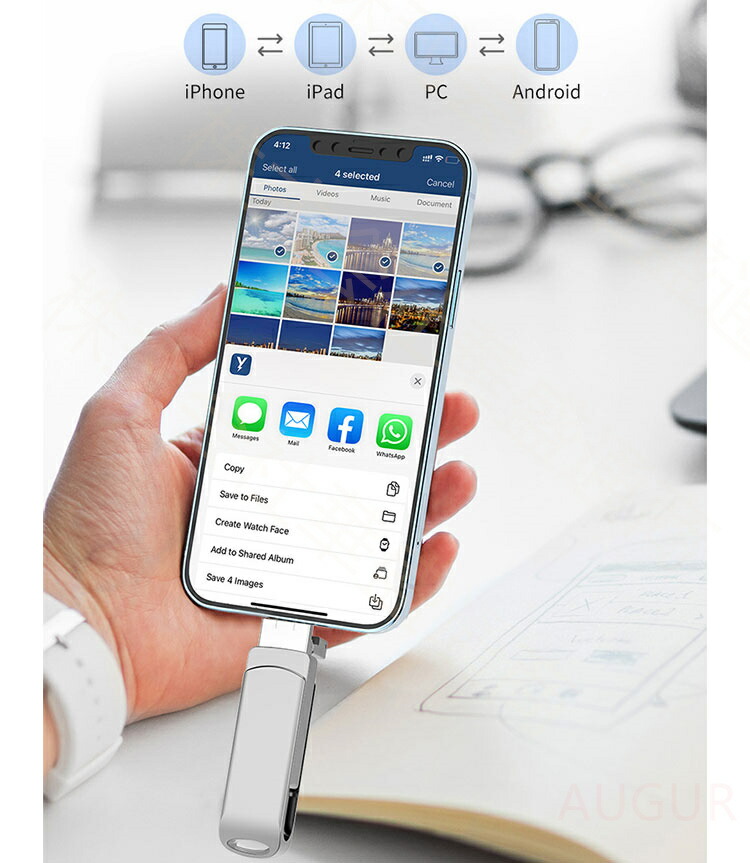 USBメモリ 64gb 128gb 256gb 4in1 大容量 iPhone iPad type-c フラッシュメモリ データ転送 スマホ用 コンパクト 多機能 高速