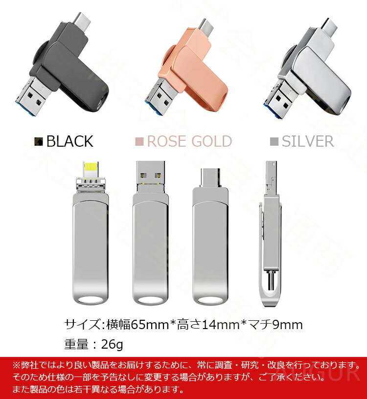 USBメモリ 64gb 128gb 2 BLACK ROSE GOLD SILVER 64GB 128GB 256GB