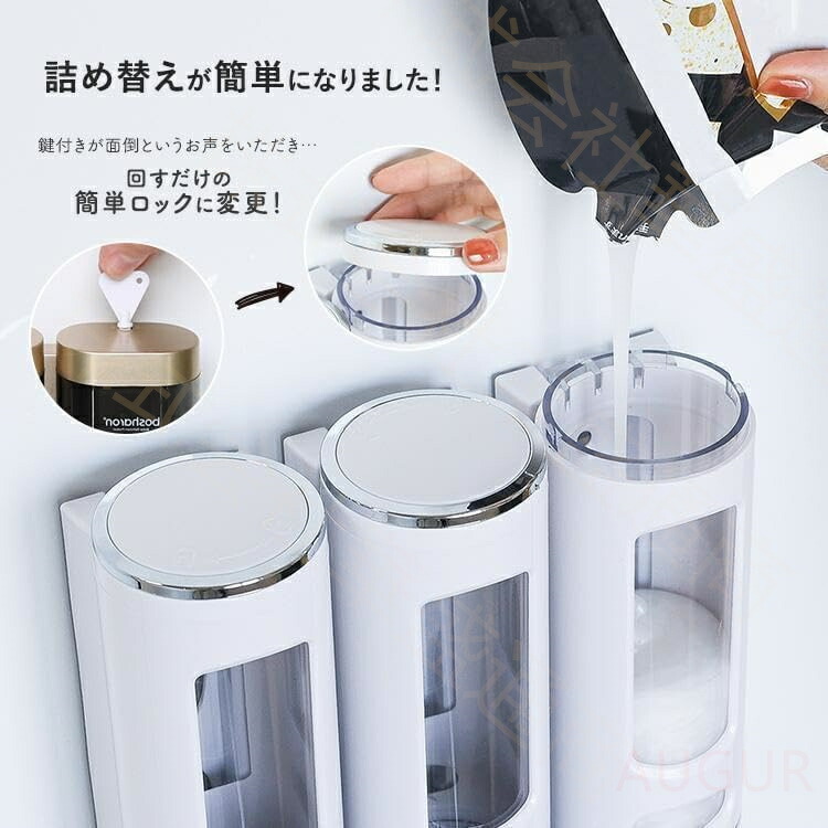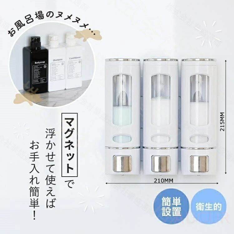 シャンプーボトル おしゃれ ソープディスペンサー 壁掛け 400ml×3本セット マグネット 磁石 ポンプ 詰め替えボトル バス収納 浴室 グッズ 片手 バス用品 お風呂