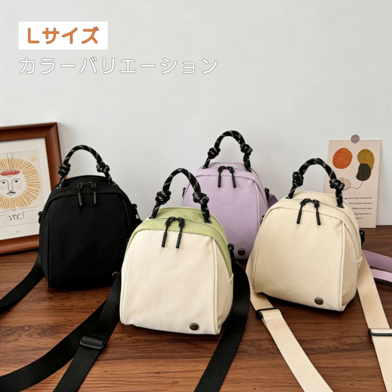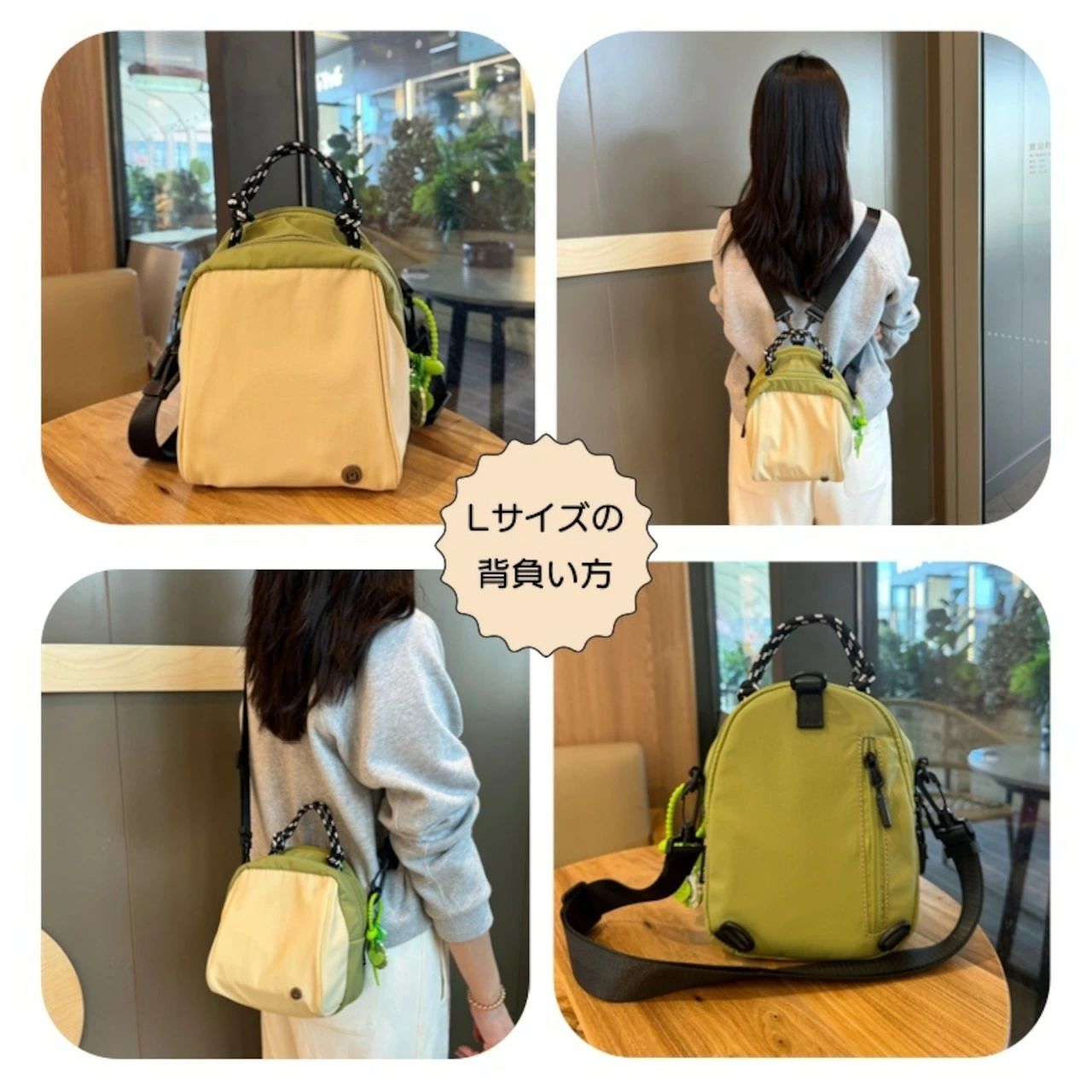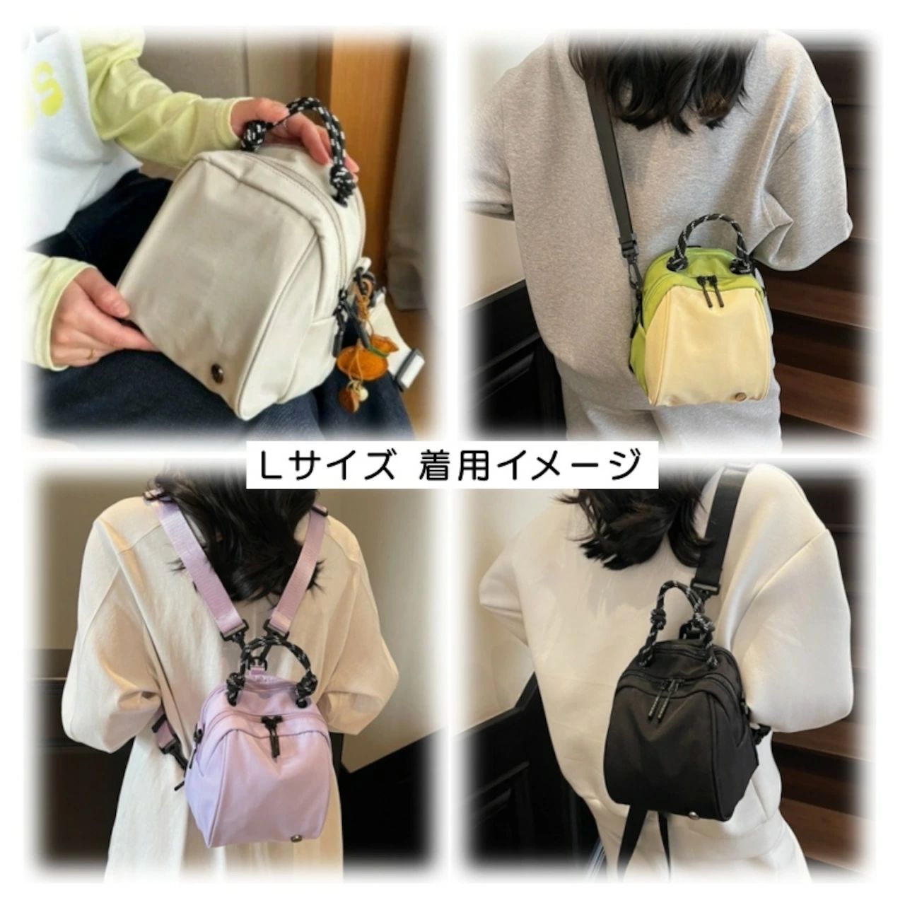 Lサイズ:4WAY: 手提げ / ショルダー / 斜め掛け / リュック