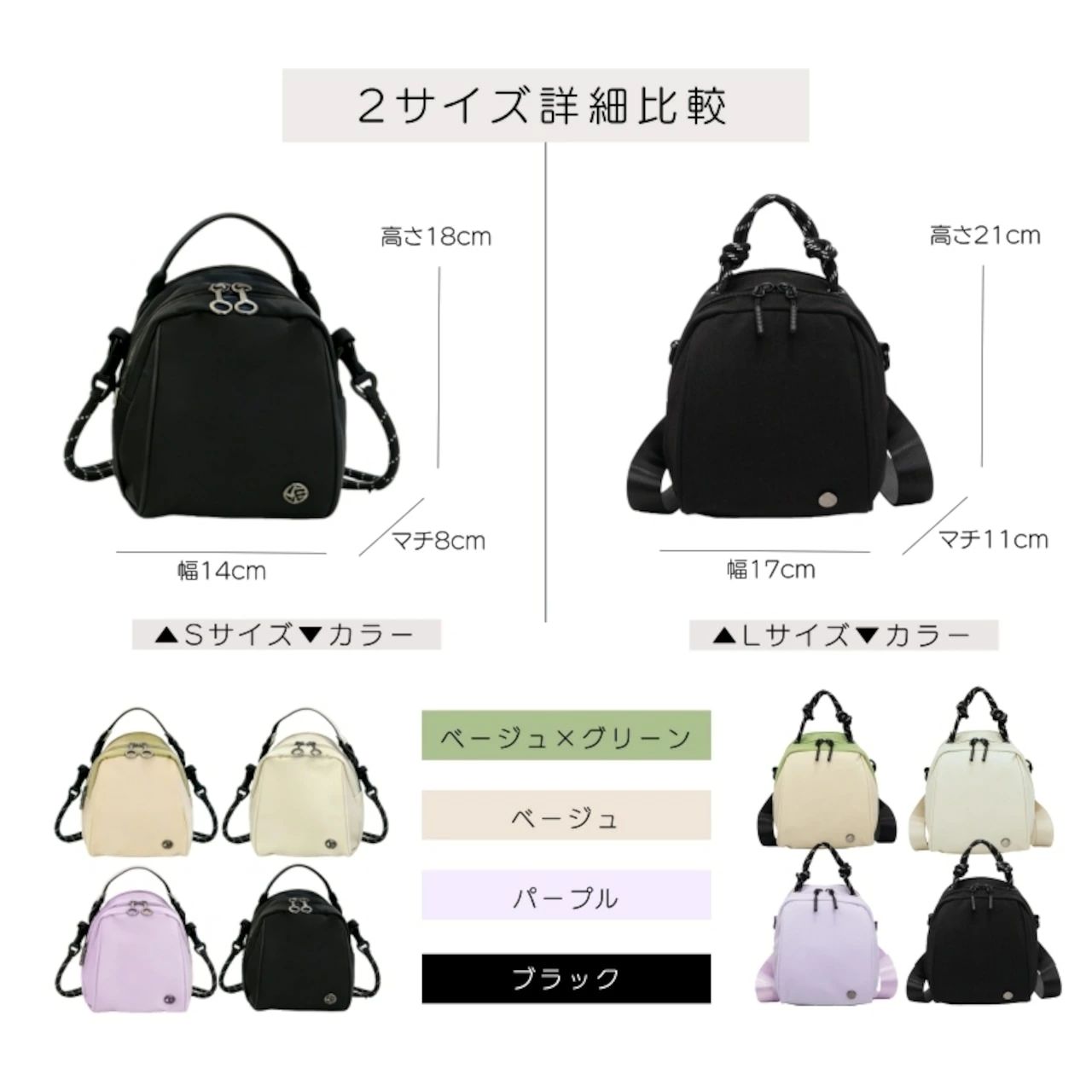 3WAY 4WAY ミニバ 300g バッグ レディースバッグ ハンドバッグ 特集 ベージュ ブラック パープル ベージュ×グリーン Sサイズ Lサイズ