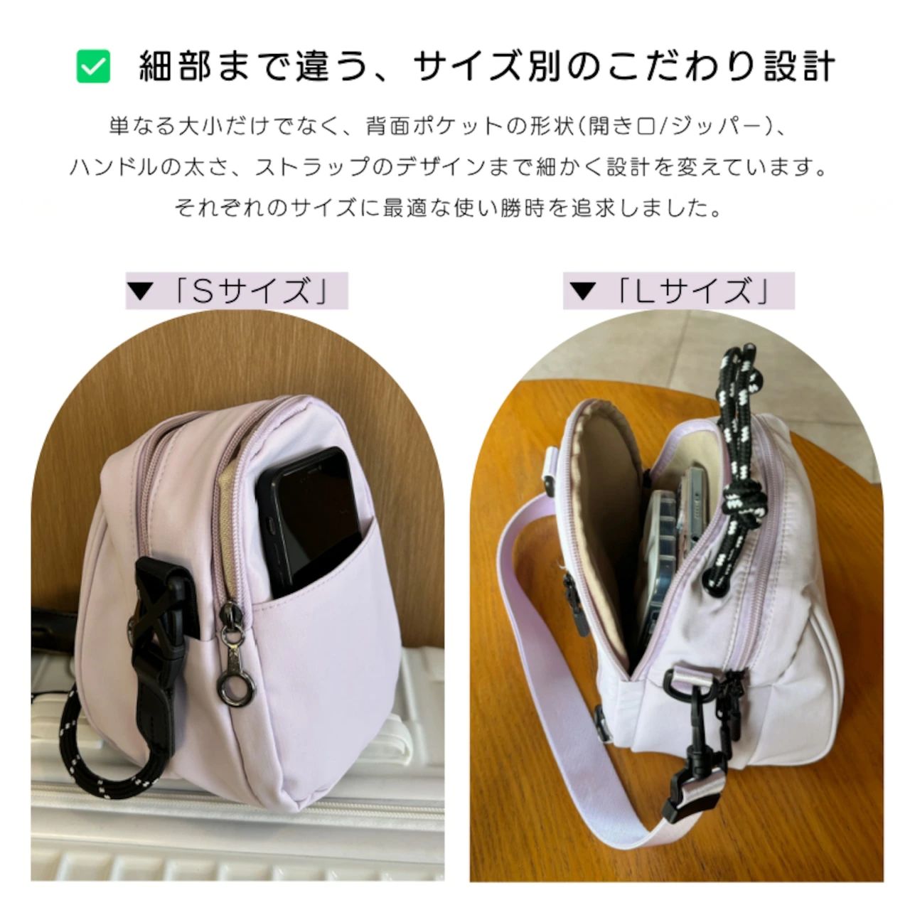 細部まで違う、サイズ別のこだわり設計