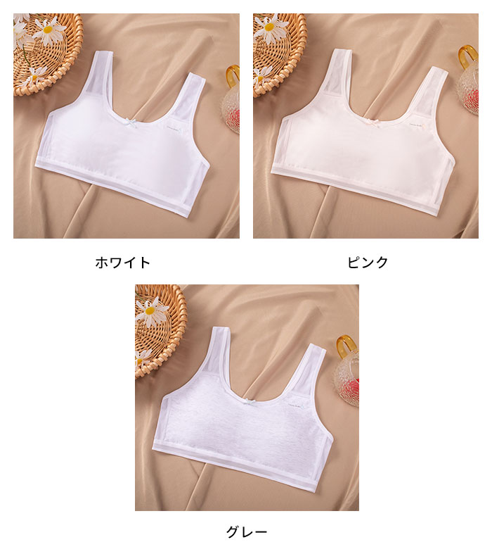 3点入り スポーツブラ 中学生 ブラジ キッズ 下着 パジャマ ブラジャー 通販 L XL XXL 白・灰・ピンク 白・3枚入り 灰・3枚入り ピンク・3枚入り