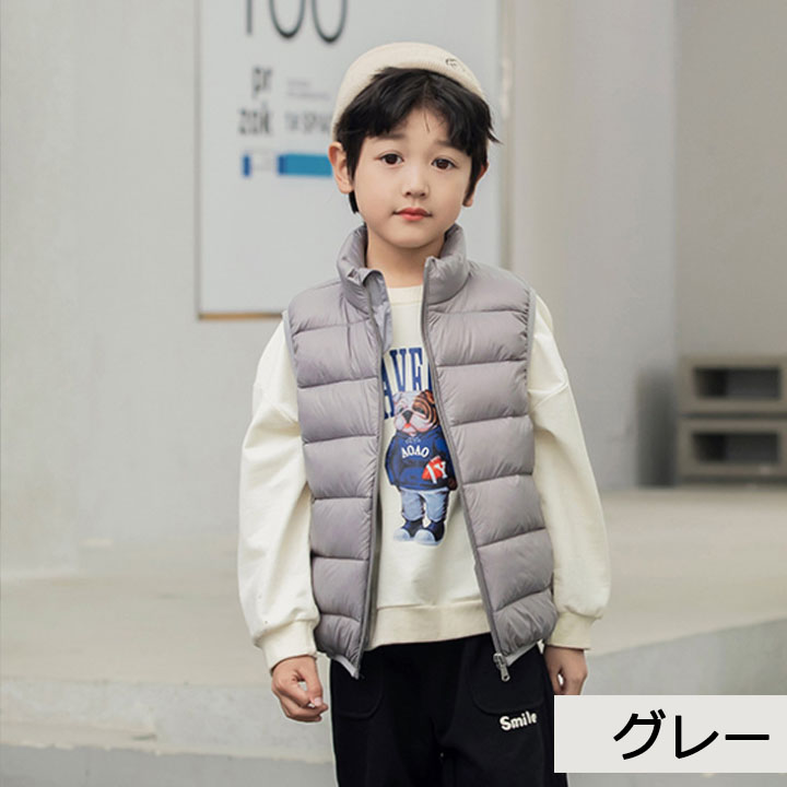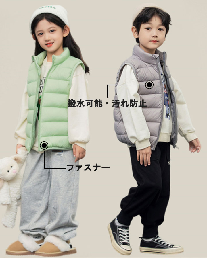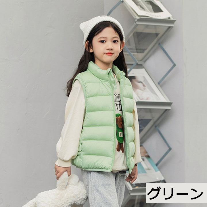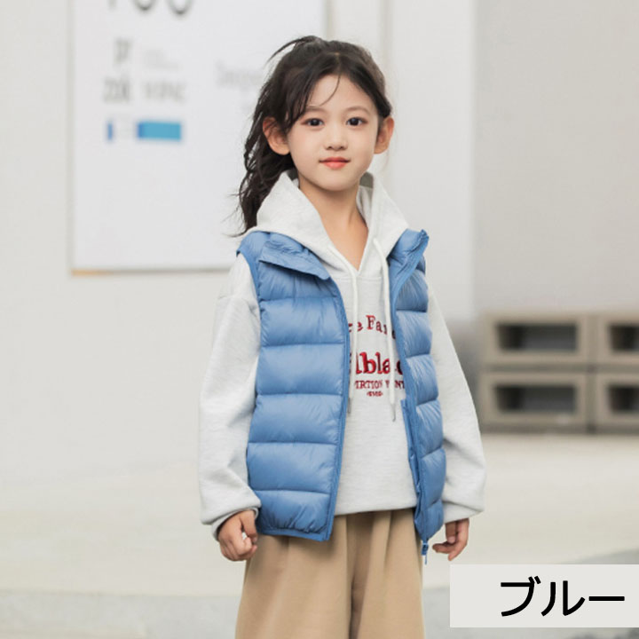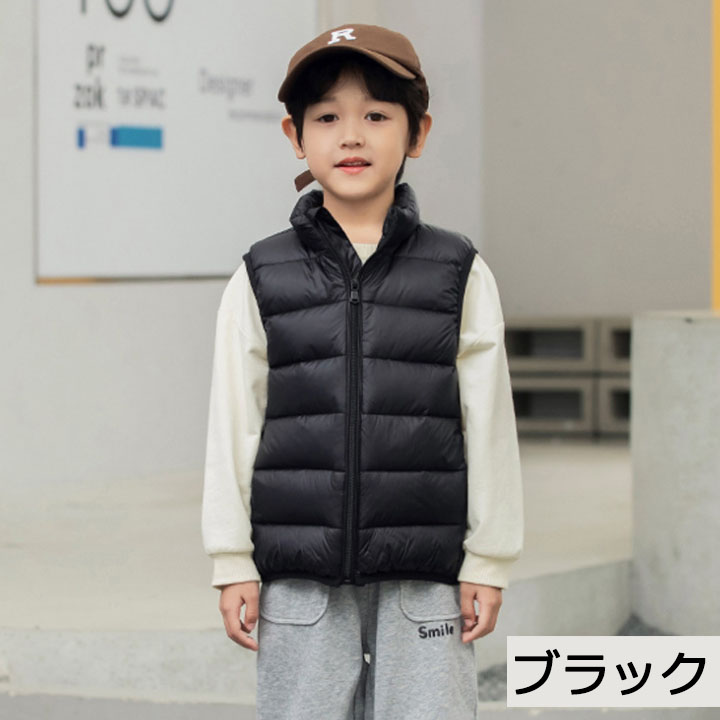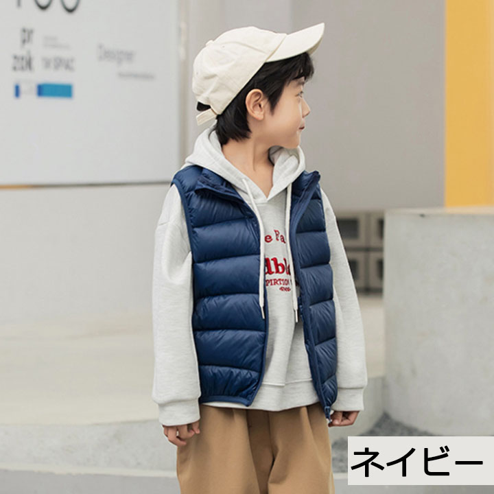 キッズ 子供 ダウンベスト ダックダウン 男の子 女の子 中綿ベスト アウター インナー ベスト ダウン 秋 冬 春 防寒 子供服 こども服 ファスナー キッズベスト ノ アウトドア