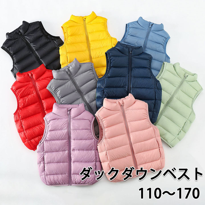 キッズ 子供 ダウンベスト ダックダウ キッズ トップス ベスト 早い者勝ち 110 120 130 140 150 160 170 100 ピンク イエロー パープル ブラック ブルー グレー グリーン ネイビー レッド