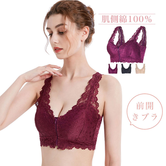 手術後 ブラジャー ブレストケアブラ 乳ガン ブラ 前開き 乳がん 術後 下着 乳癌 前あきブラ ノンワイヤー 綿100 チャック式 綿 レース アトピー 前あき 哺乳
