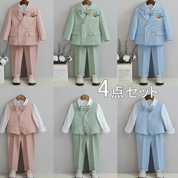 4点セット ピンク ブルー グリーン子供スーツフォーマル スーツ キッズ 男の子 発表会 入学式 入園式 こども 子供服フォーマルスーツ キッズスーツ ベビースーツ 卒園式 卒業式 小 結婚式