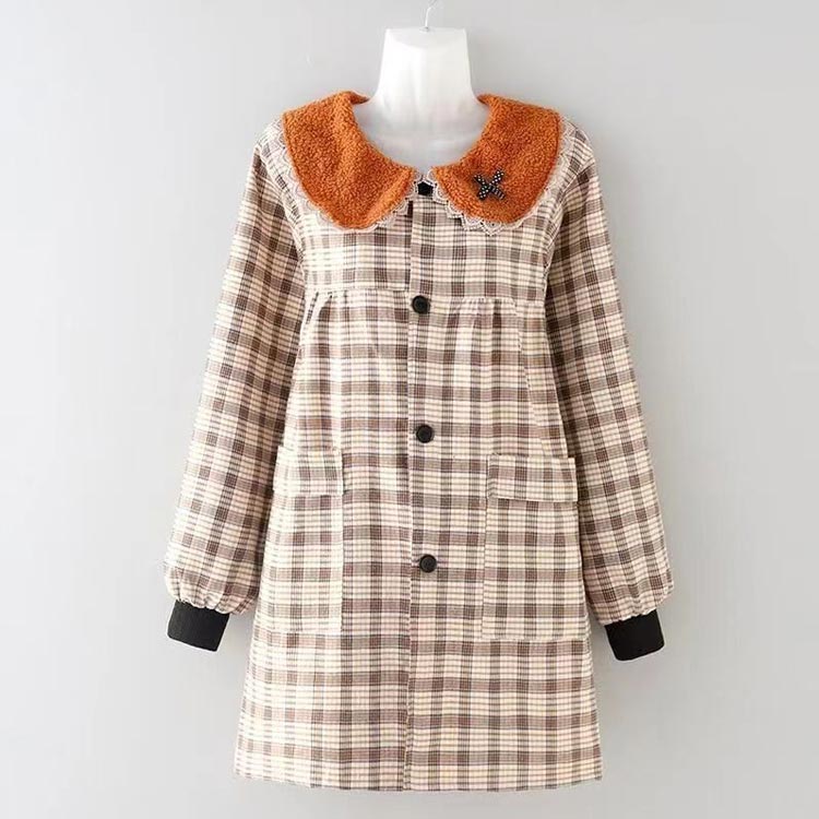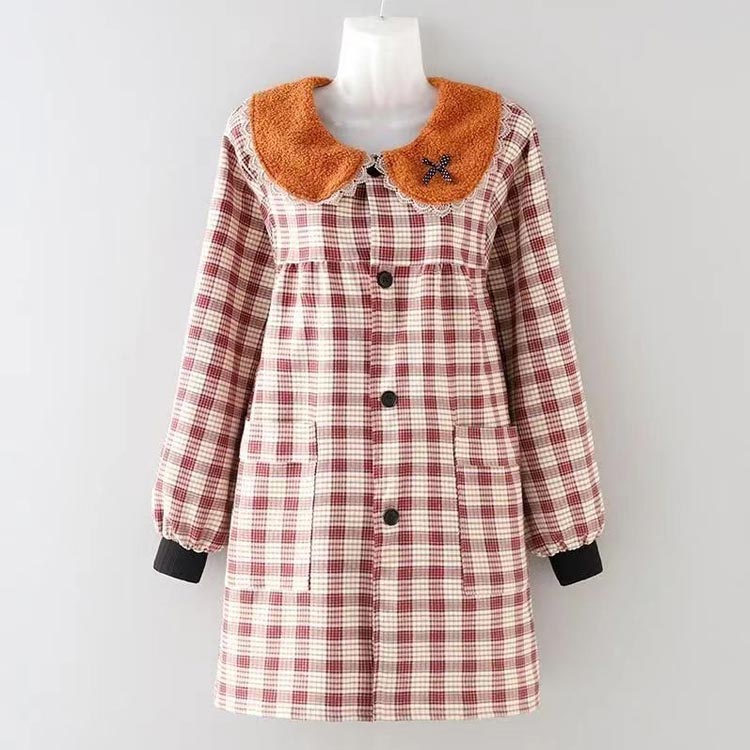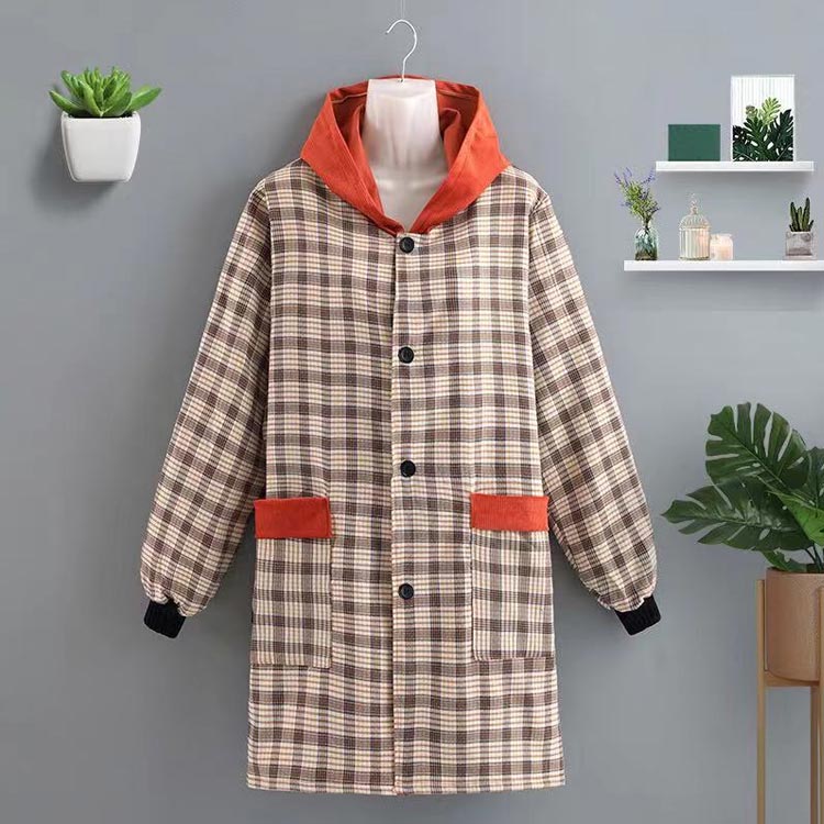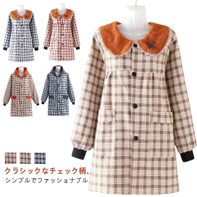 割烹着 おしゃれ かっぽう着 2タイプ選べる 帽子付き 襟付き チェック柄 サイドポケット付き 前開き ウェア ウエアタイプ 防水 防油 かわいい レディース 汚れ防止 チェック ルー スモック