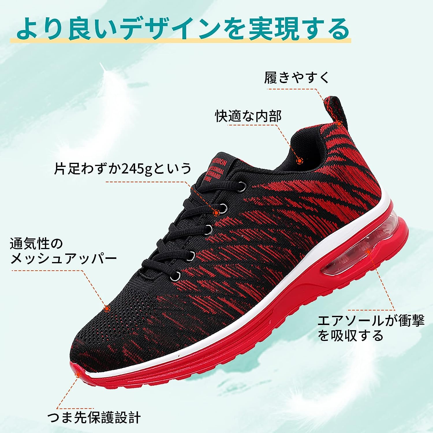 【超軽量】エアクッションのソールとポリエステルの材質でスポーツシューズならではの軽さを実現し、通気性もよいです。どんな季節でも着用します。 軽量なので、ランニングや歩くや他の運動が易くになりました。