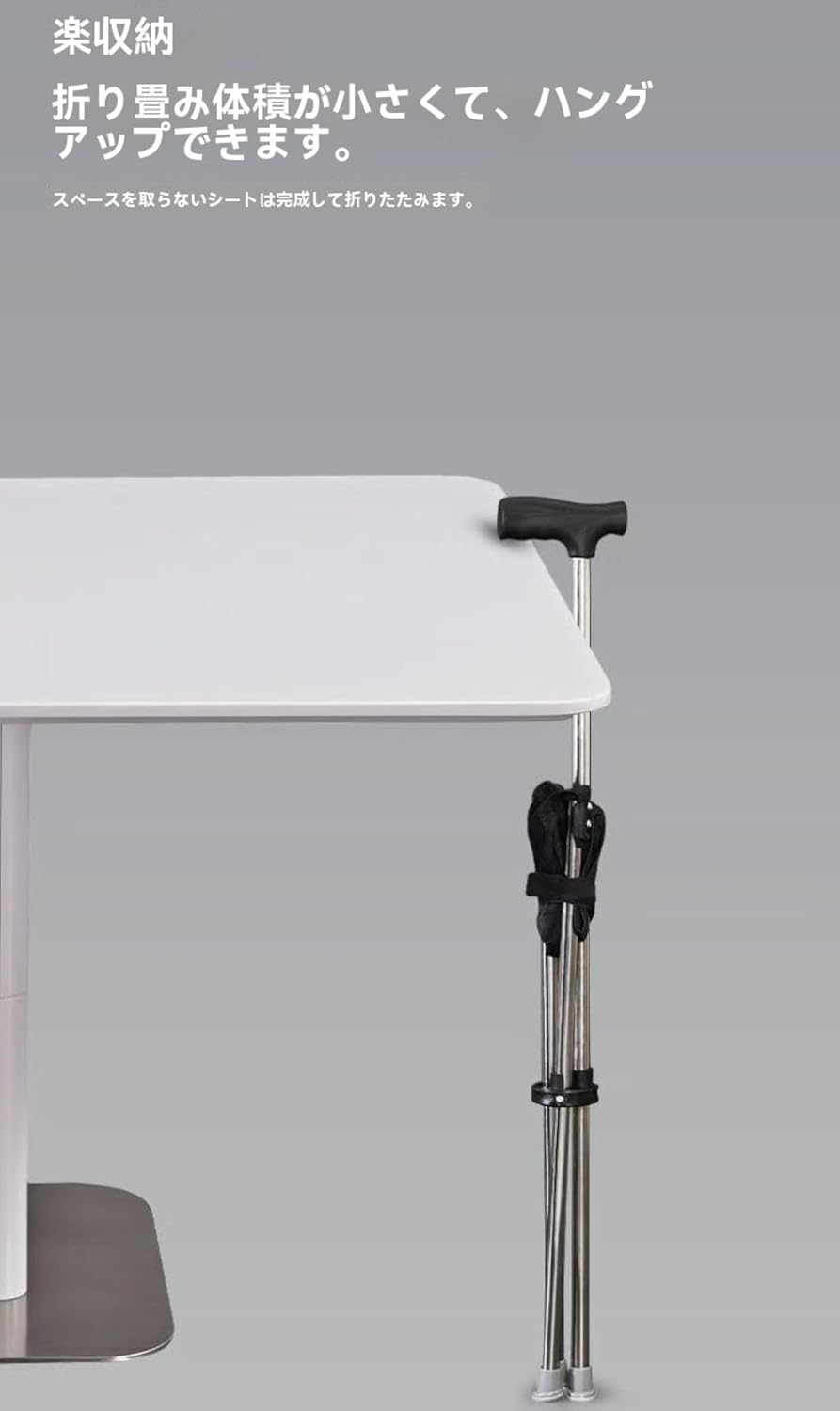 【二役一体型 折りたたみ杖】この多機能登山ストックはステッキにも椅子にもなり、1台で2役のステッキチェアです。杖椅子は、登山や散歩する時の杖にするだけでなく、疲れたら椅子にすることもできます。折りたたみステッキの長さは使用者の身長に合わせて自由に調整られます。シート付き杖は複雑な手順を踏まずに両手で簡単的に椅子に変形させられます