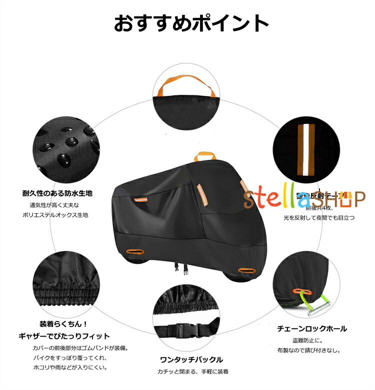 バイクカバー 厚手 耐熱 防水 6サイズ 溶けないバイクカバー 耐熱バイクカバー 防水バイクカバーオートバイカバー レインカバー 50cc 125cc 250cc 400cc 原付バイク 150cc