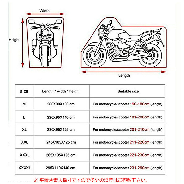 バイクカバー 厚手 耐熱 防水 6サイ タイプ1 タイプ2 タイプ3 M L XL XXL XXXL XXXXL