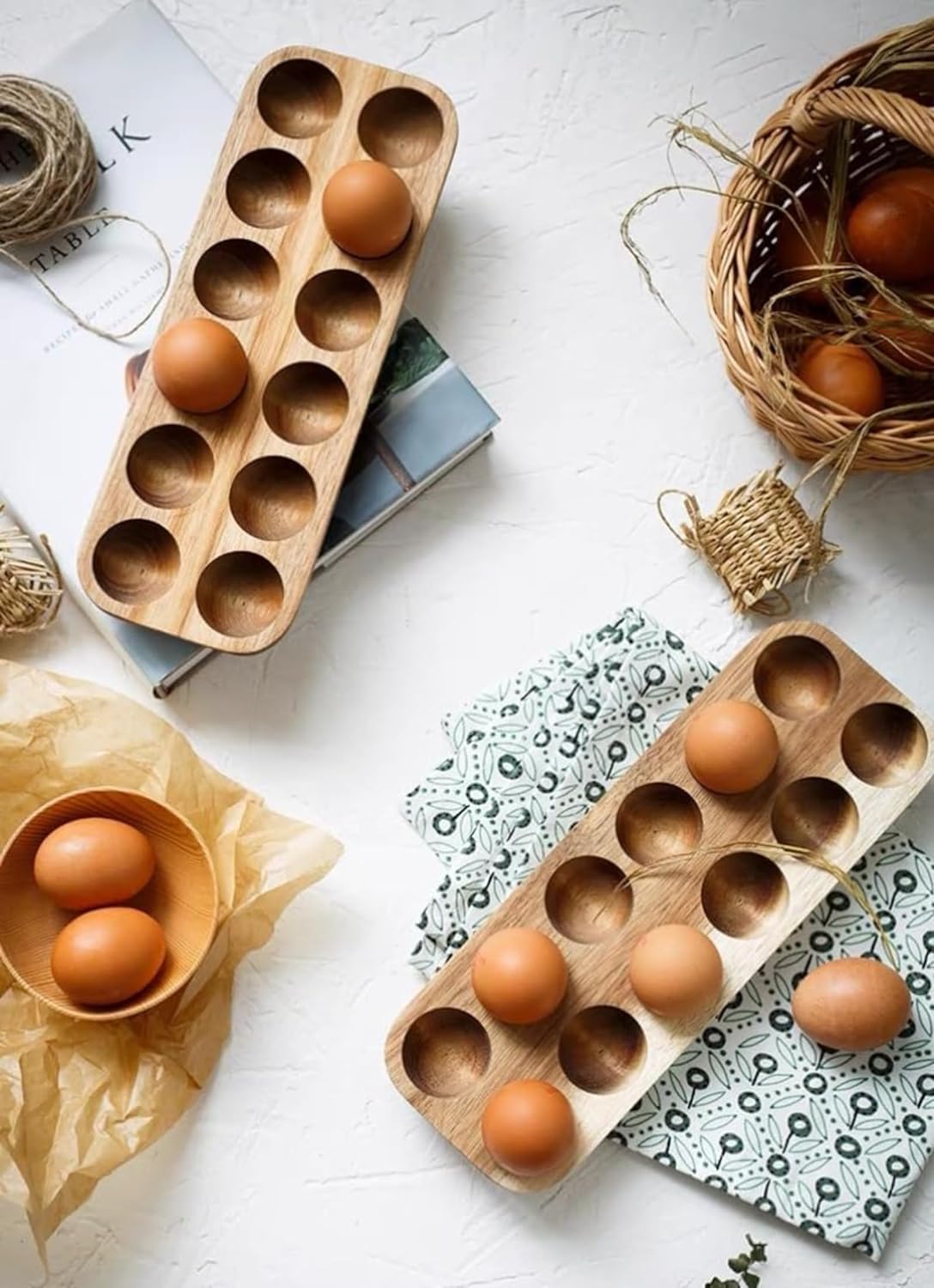 【ユニーク】保管に最適、卵と物体の衝突を防ぎ、詰まった卵は卵を保護するのに効果的です。店で購入した卵や農場の新鮮な卵を保持するのに最適な美しい木製の卵箱。