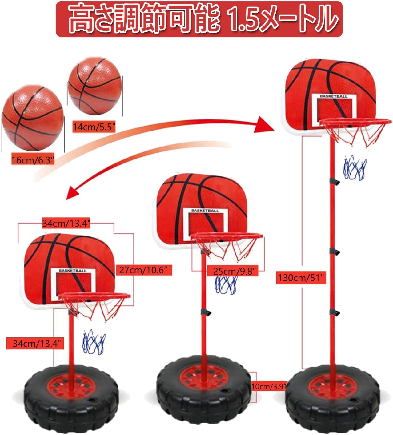 高さ調節可能 - フープサイズ:150cm、高さ調節可能(63-120cm)、40cm~70cmのお子様に適しています、サイズ:170cm、高さ調節可能(63-140cm)、50cm~115cmのお子様に適しています。サイズ:200cm、高さ調節可能(70-170cm)、身長60cm~130cmのお子様に適しています。ポータブルバスケットボールは、子供たちに本物のバスケットボールの経験をもたらし、より多くの友人を作ることができます。