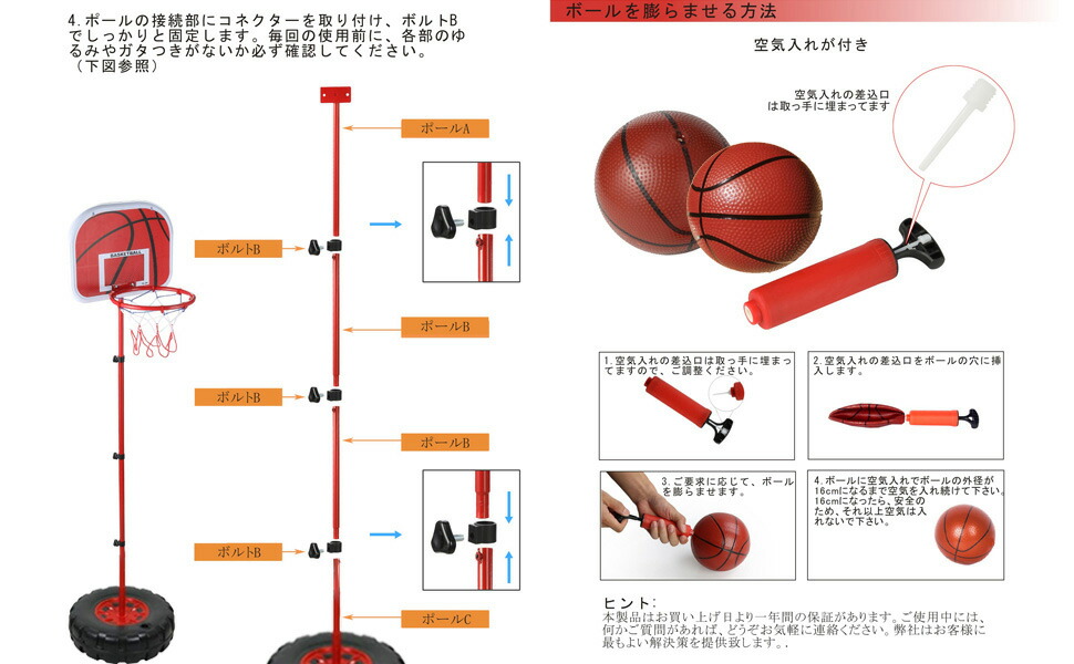 改良版 - 他の売り手の普通のバスケットボールラックと比較して,私たちのバスケットボールラックは、強化された厚みのあるタイヤベースを使用しています,素材が強い,容量が大幅に改善されました,安定性が大幅に向上しています,見た目も大幅に向上. しかも,子供用バスケットゴールの品質が従来より、改善されました。ゴール板プラスチックとポール、ゴールリングの接する部分まわりにも補強されました。