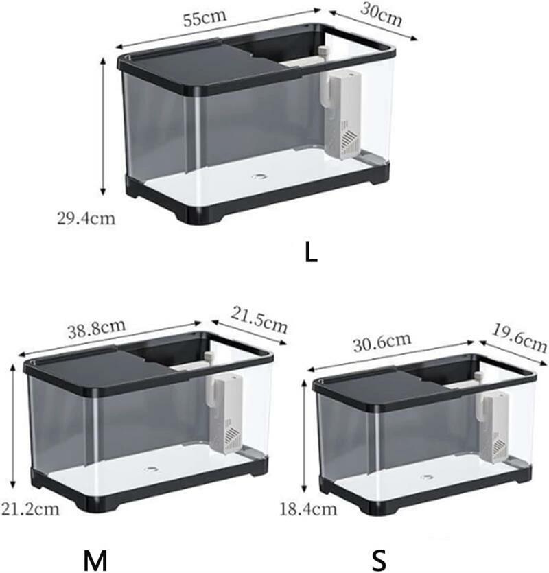 餌やりや保管に便利なスマートなトップカバーデザインを提供することで、この水槽キットはメンテナンスが簡単になり、生態学的バランスを促進します。また、魚の餌や小さな装飾品を整理整頓して手の届くところに保管できる追加の収納スペースもお楽しみいただけます。