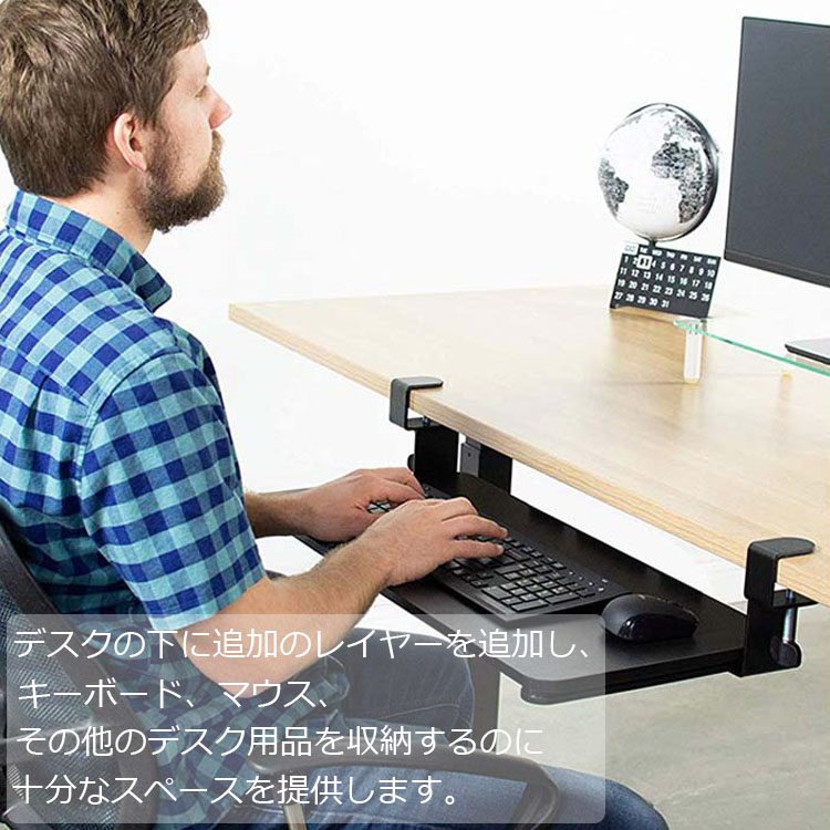 非常に頑丈なCクランプにより、デスクにダメージを与えることなくワークステーションにキーボードトレイを安全に取り付けます。