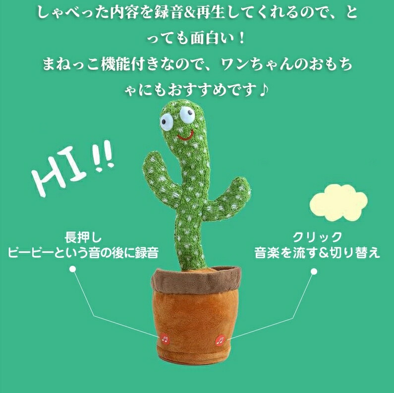 SNSで話題 踊るサボテン 動く 踊る サボテン 玩具 ベビー キッズ シェイク ダンシング カクタス ぬいぐるみ 録音 言葉の繰り返し 英語の歌付き 音楽 癒し おもちゃ 知育玩具 赤ちゃん 飾り