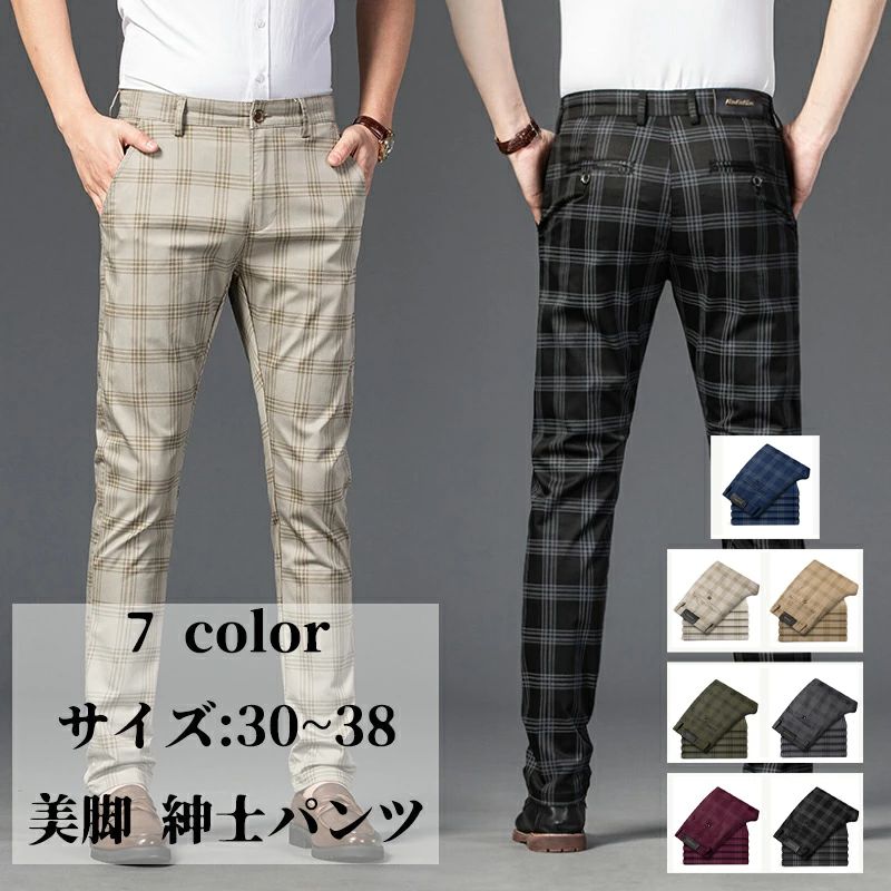ゴルフパンツ メンズ スキニーパンツ スラックス ストレッチパンツ 紳士パンツ チェックパンツ チェック柄 オシャレ 美シルエット 美脚 小尻 ゴルフウェア パンツ 春 ロングパンツ ズボン ス 夏
