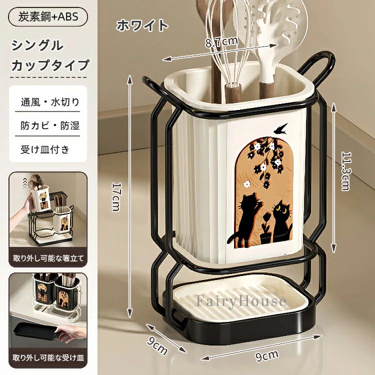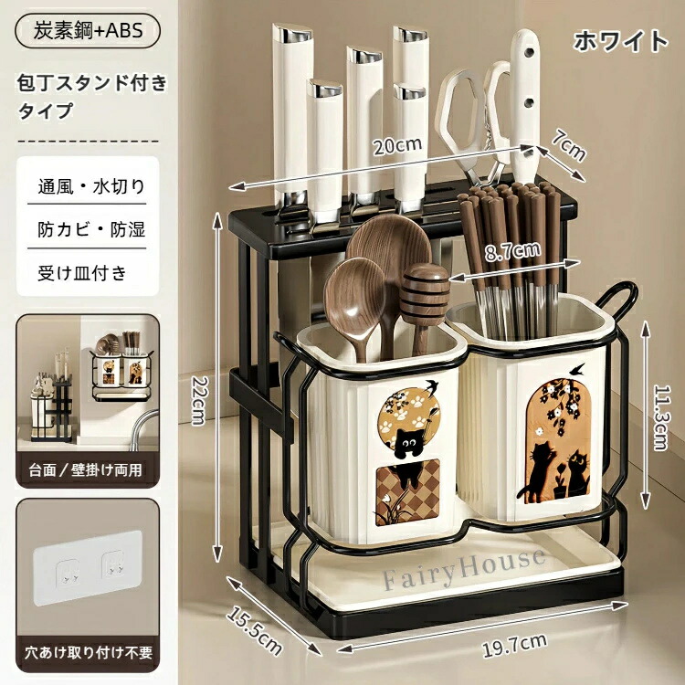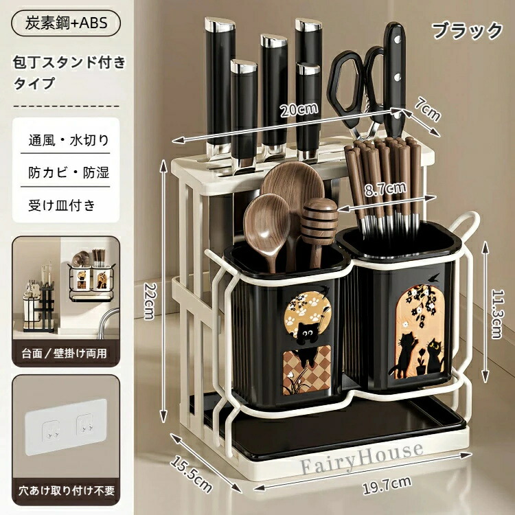 キッチン 包丁立て 厚手素材 卓上水切 食器 カトラリー グラス 箸 カトラリー 箸置き 超目玉商品 ホワイト ブラック 包丁スタンド付きタイプ シングルカップタイプ ダブルカップタイプ