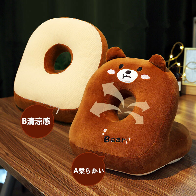 【お昼寝効果アップ】中央部分が空いておりお昼寝枕、うつ伏せの状態でも空間ができるため呼吸がしやすい構造です。またうたた寝時に、下の空間に腕を入れられるので、腕を圧迫されるしびれがなく、確実にお昼寝の快適さをアップします。