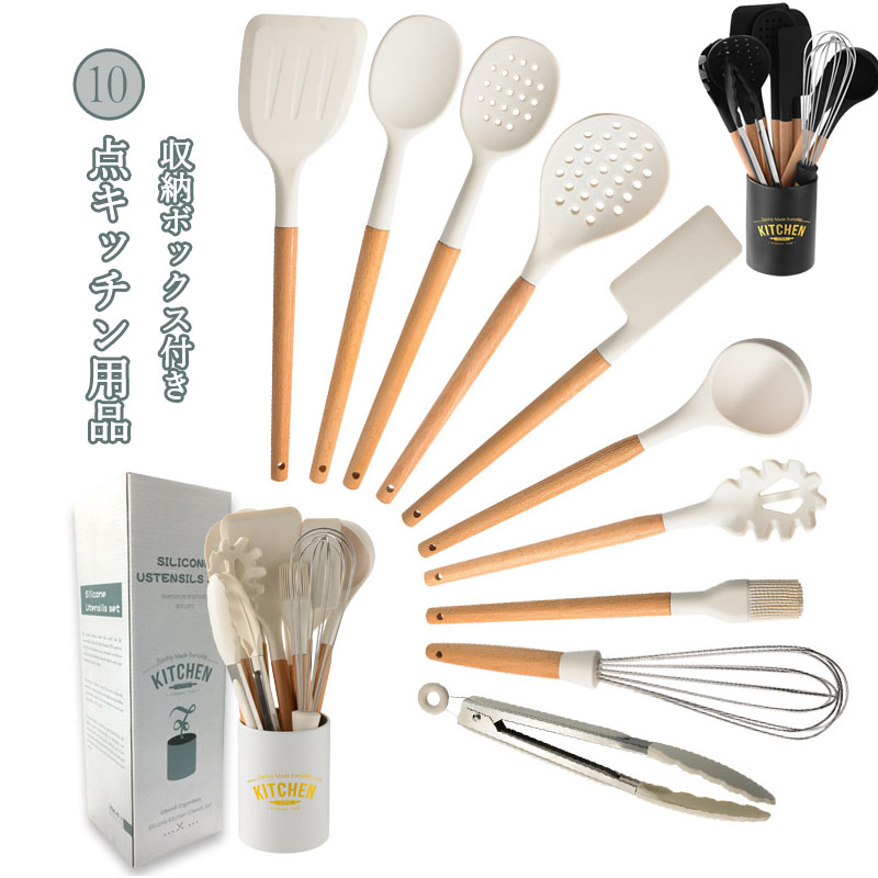 調理器具 キッチンツール キッチン 耐熱 台所用品 安全トング スプーン ブラシ 調理 料理 スプーンおたま 泡立て器 調理用品 10点セット トング