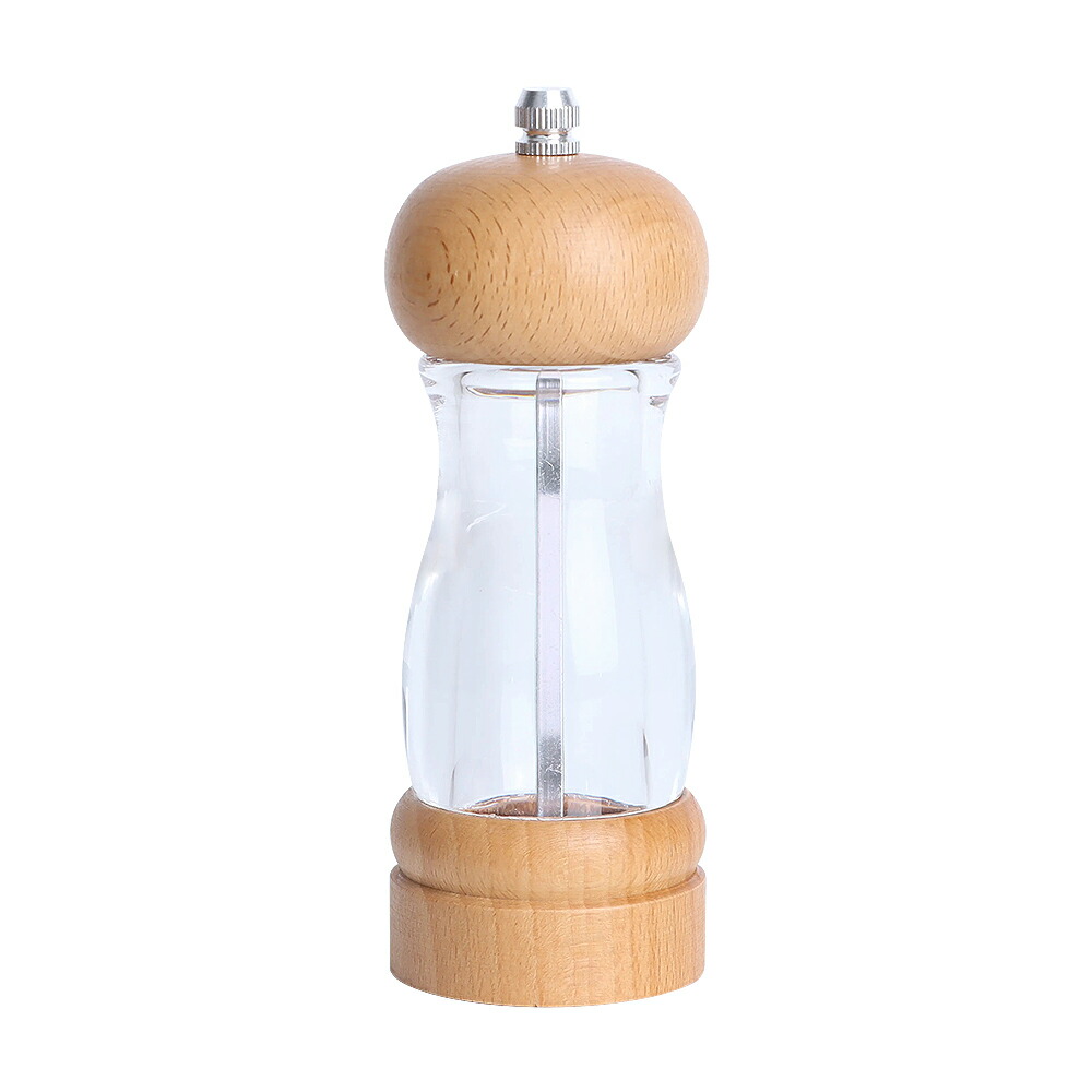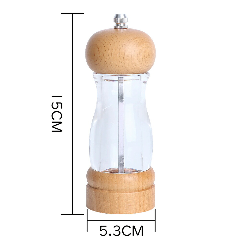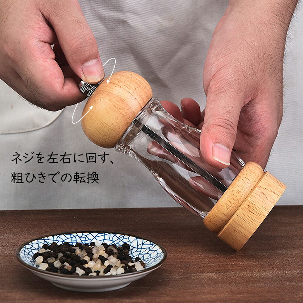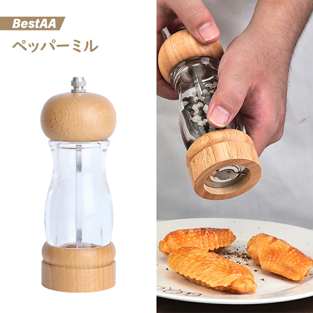 胡椒ひき ペッパーミル ペッパーグラインダー ミル 手動塩グラインダー 調節可能なセラミック 研磨ローターソルトミル スパイスミル 木製 アクリル製 胡椒ミルオーク材製 黒コショウ 岩 可視ウィンドウ
