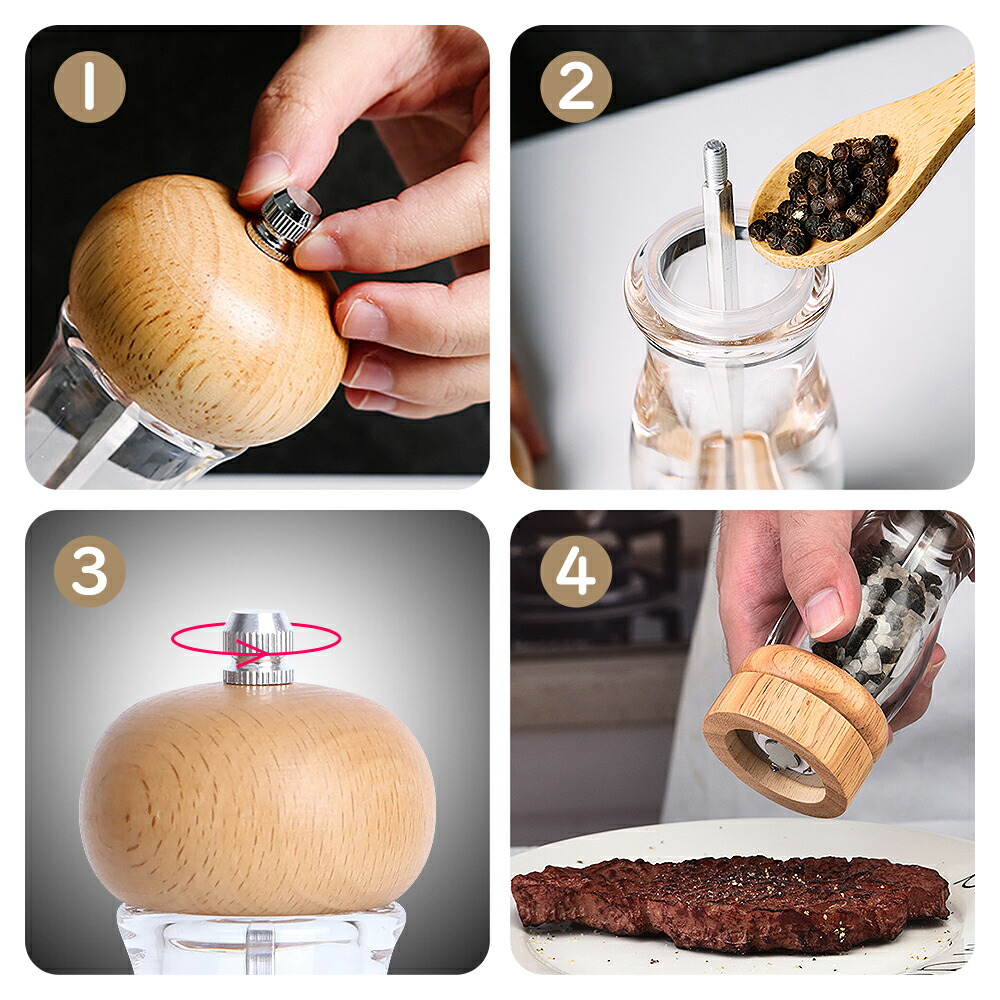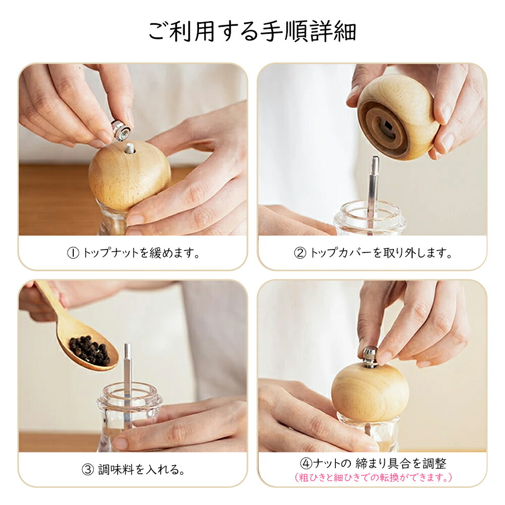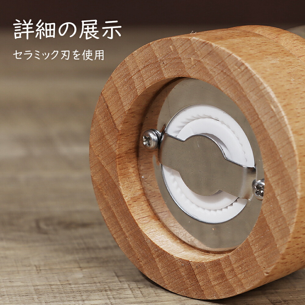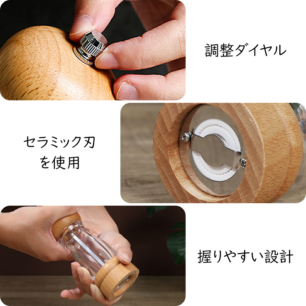 胡椒ひき ペッパーミル ペッパーグラインダー ミル 手動塩グラインダー 調節可能なセラミック 研磨ローターソルトミル スパイスミル 木製 アクリル製 胡椒ミルオーク材製 黒コショウ 岩 可視ウィンドウ