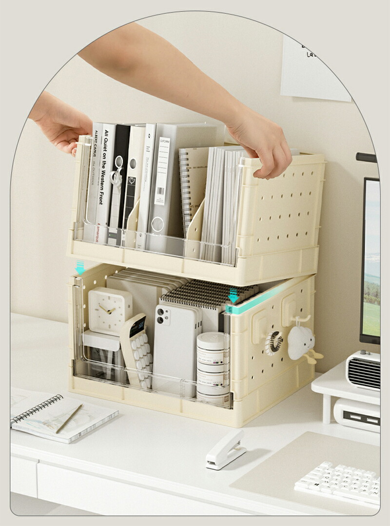 収納ボックス デスク上置き棚 折りたたみ式 ファイルボックス 卓上収納ラック 収納 折りたたみ式踏み台 折りたたみ式電気ケトル 折りたたみ式ペットサークル オフィス収納 卓上棚 机上収納ボック 大容量