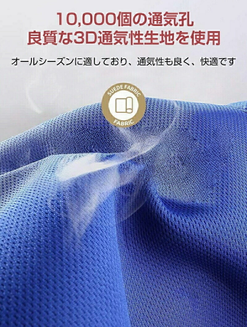 通気性のあるメッシュ生地を採用し、長時間の使用でも蒸れにくく快適です。また、取り外し可能で洗えるため、いつでも清潔に保つことができます。