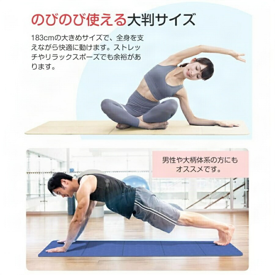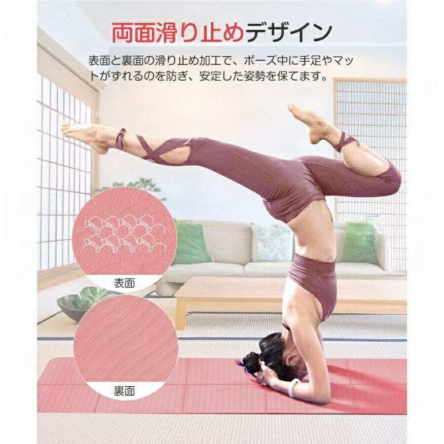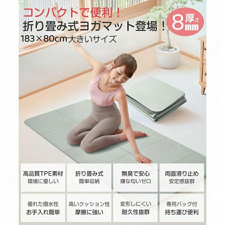 ヨガマット 大きい 収納バッグ 大判 幅広 無地 折りたたみ 8mm TPE素材 くすみカラー 厚手 洗える 収納 滑らない 滑り止め ワイド マット 持ち運び 大きいサイズ オフィス コンパクト
