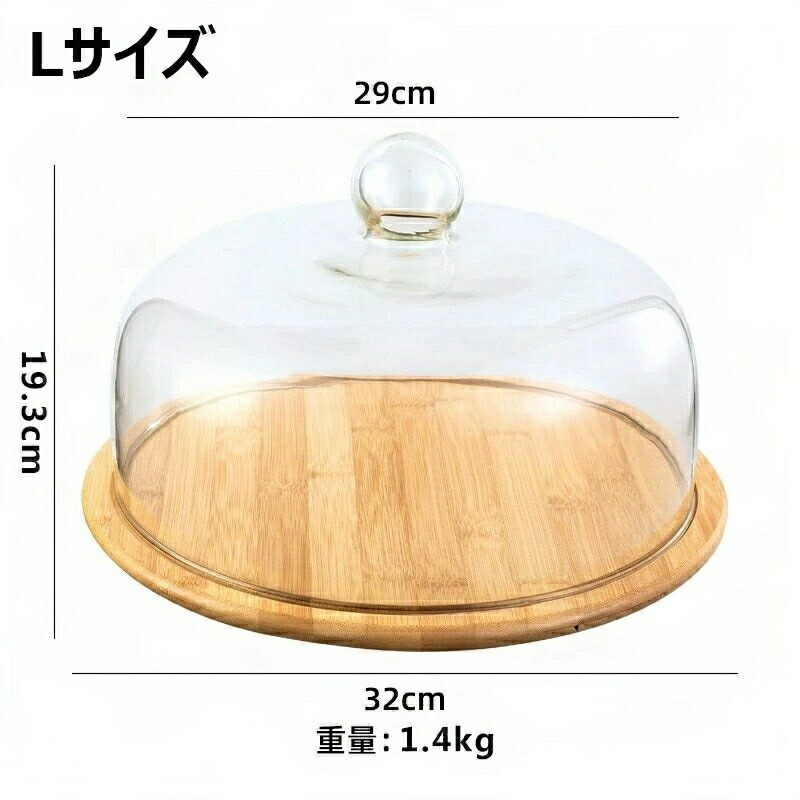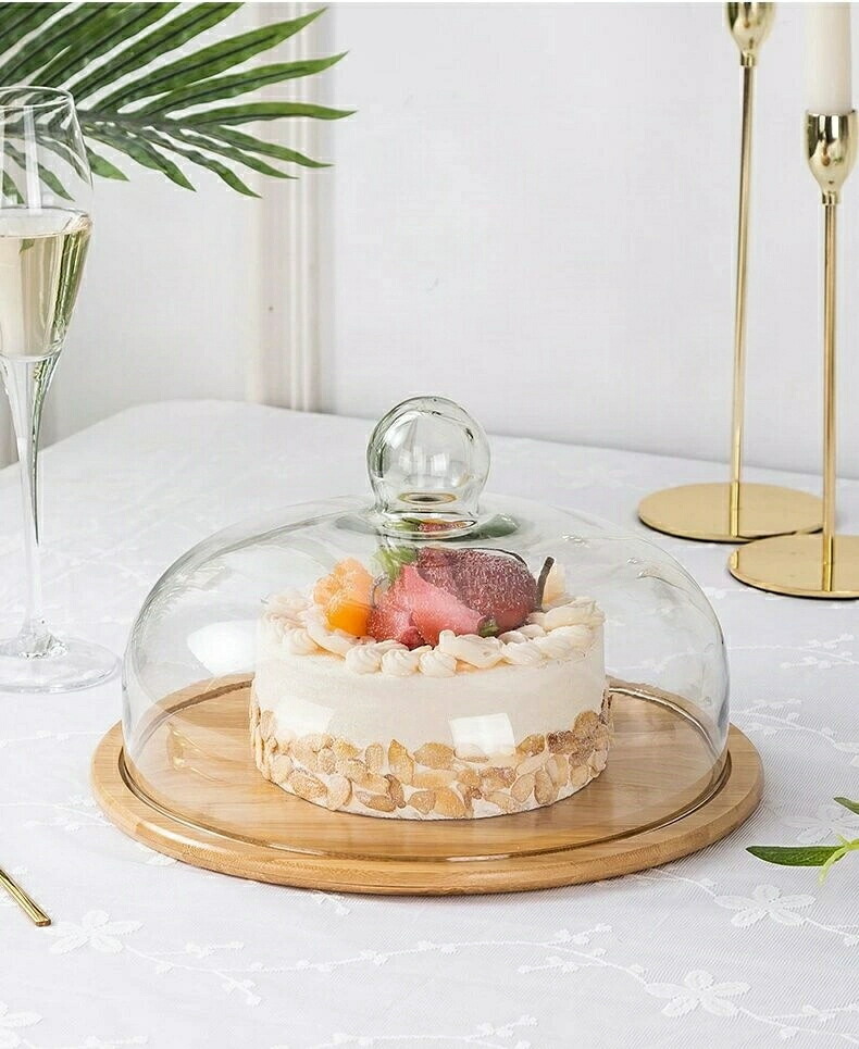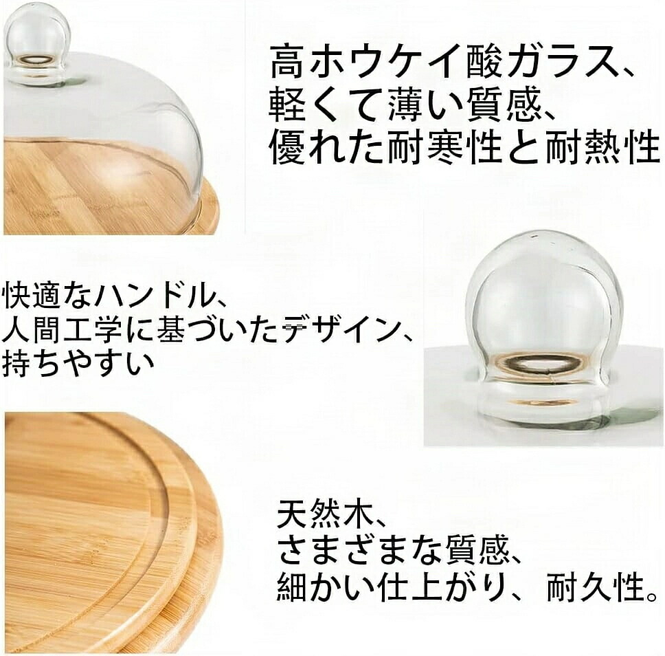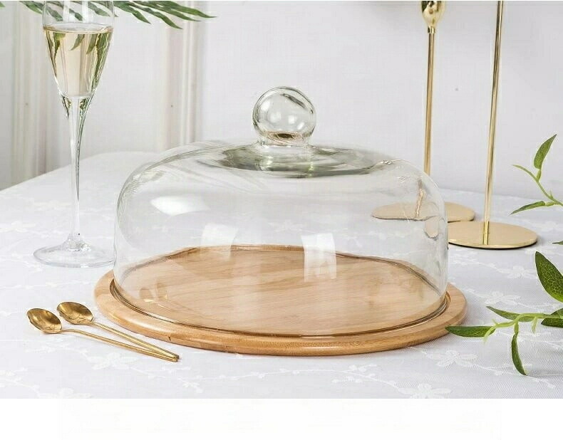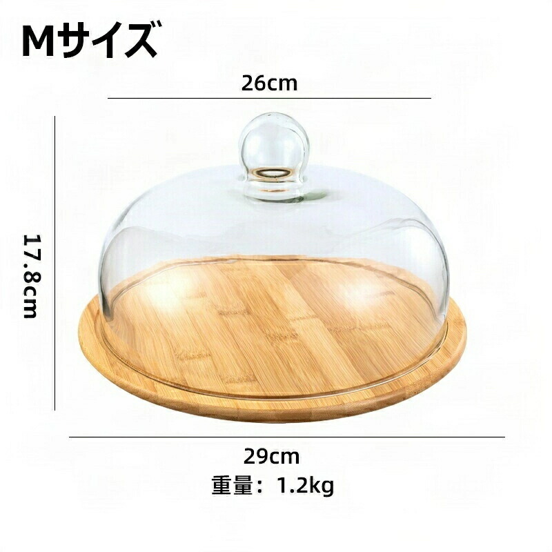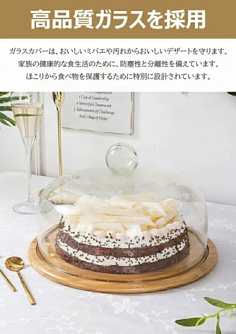 ガラスドーム ケーキカバー ケーキスタンド 蓋付き 果物 ガラス 竹製トレイ付き お菓子 デザート ケーキ スナック クッキー収納バスケット 誕生日 結婚式 パーティー ビュッフェ用 ブ 宴会テーブル