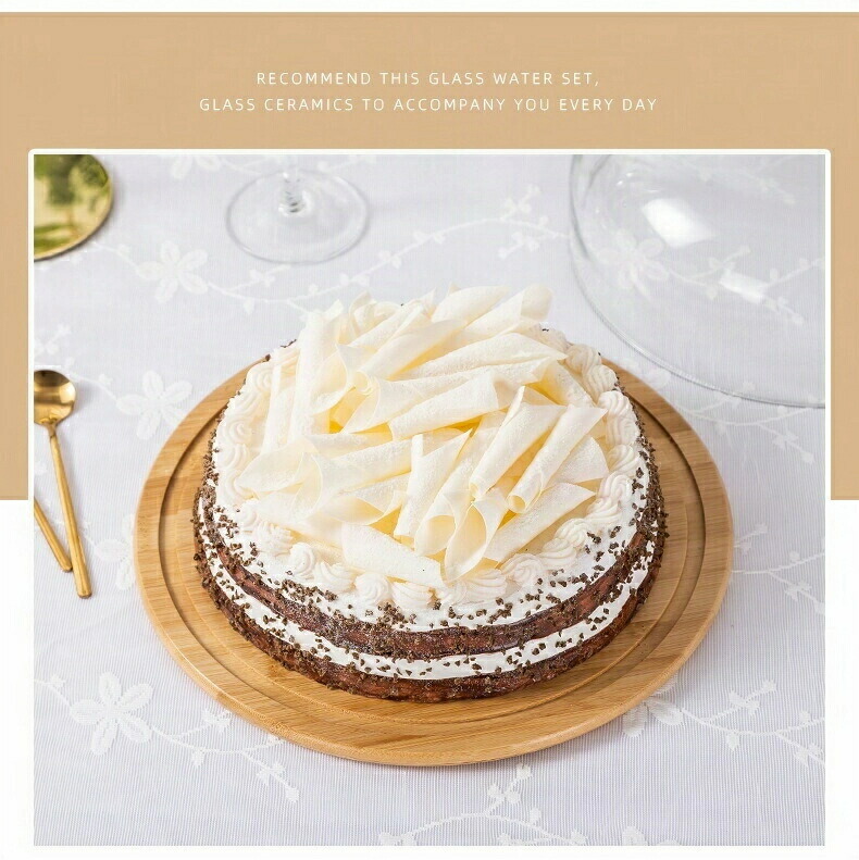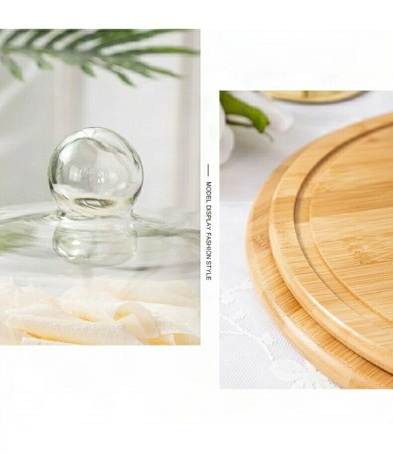 【竹製ケーキスタンド】 竹製トレイの溝は、ガラスカバーのずれを防ぎます。 このトレイは、フルーツやお菓子、スナックなど、キッチンや生活用品の収納に最適です。