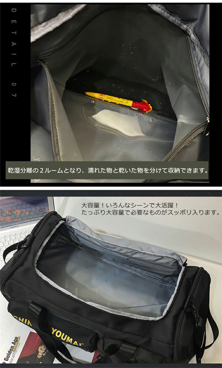 スポーツバッグ ボストンバッグ ジムバッグ バッグ フィットネスバッグ ヨガカバン ショルダーバッグ リュック シューズ収納 多機能 乾湿分離 軽量 撥水 大容量 斜めがけ 旅行 ゴルフ 出張 通勤