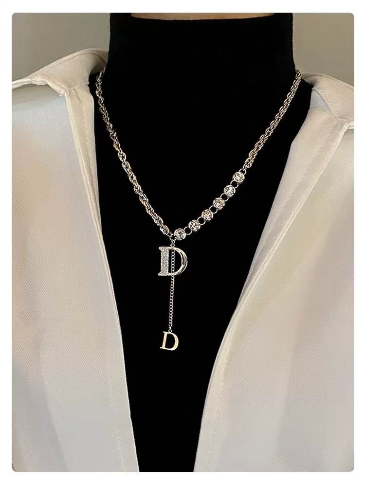 ネックレス レディース Dモチーフ シルバー チャーム ダイヤモンド おしゃれ カジュアル シンプル エレガント 大人 結婚記念日 結婚式 母の日 女性 プレゼント