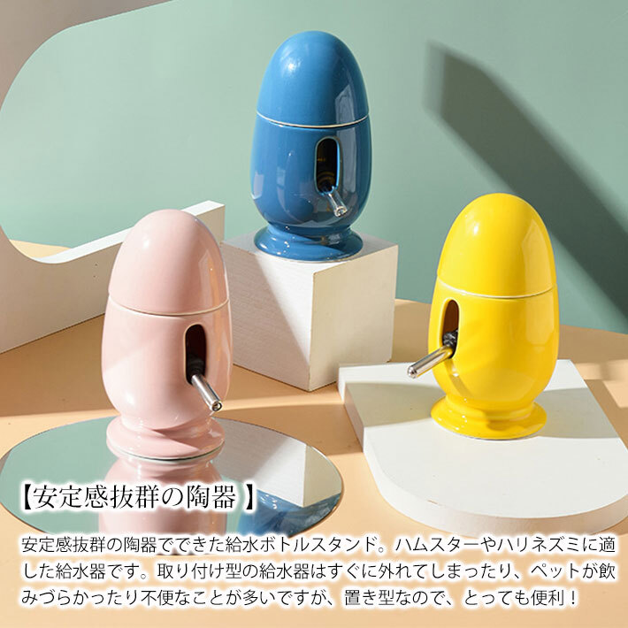 可愛いペットが大喜び!小動物用ウォーターサーバー!安定感抜群の陶器でできた給水ボトルスタンド。ハムスターやハリネズミに適した給水器です。取り付け型の給水器はすぐに外れてしまったり、ペットが飲みづらかったり不便なことが多いですが、置き型なので、とっても便利!