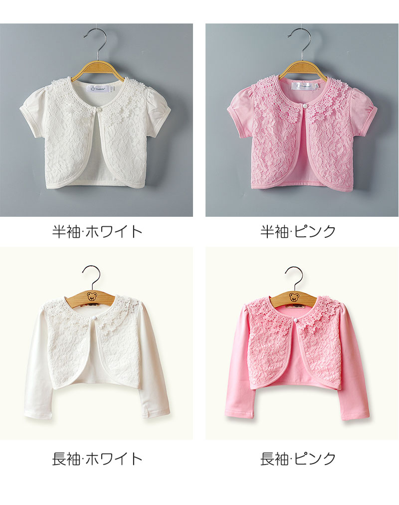 ボレロ ベビー レース 半袖 結婚式 キッズ トップス ポロシャツ 早い者勝ち 半袖・ホワイト 半袖・ピンク 長袖・ホワイト 長袖・ピンク 100 110 120 130 140 150 160