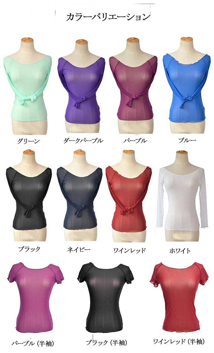 バレエ トップス 大人 長袖 レディー S M L XL XXL XXXL ブラック グリーン ダークパープル パープル ブルー ネイビー ワインレッド ホワイト パープル(半袖) ブラック(半袖) ワインレッド(半袖)