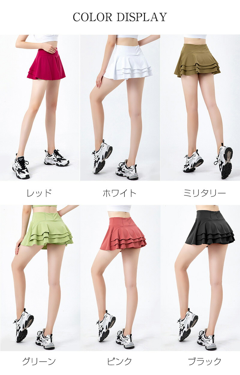 フリルスカート スポーツ スカート ミ スポーツ アウトドア 豊富 レッド ホワイト ミリタリー グリーン ピンク ブラック S M L XL