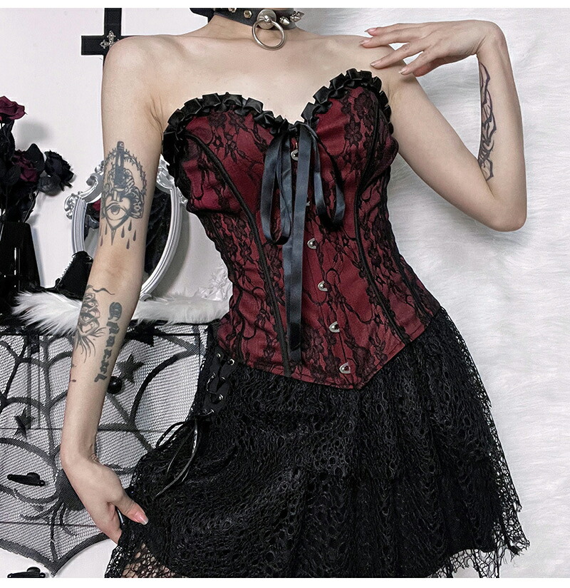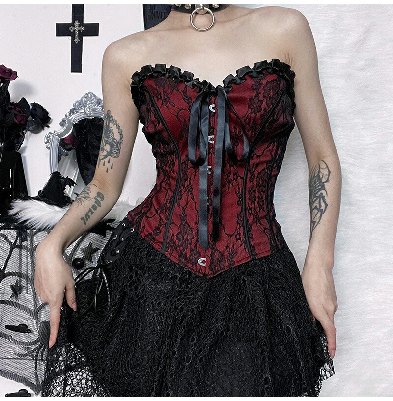 コルセット ブラックレースリボン S M L 黒色 ベスト フック ボディースーツ コスプレ 衣装 補正下着 コスチューム SM ボンデージ 大人 仮装 女王様 ドレス ハロウィン