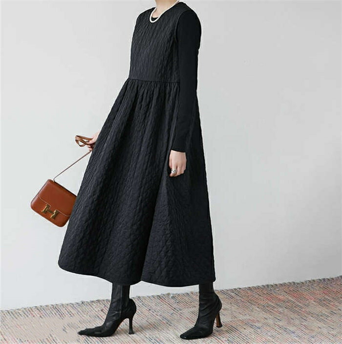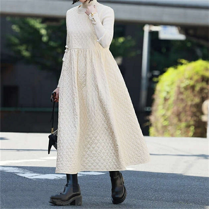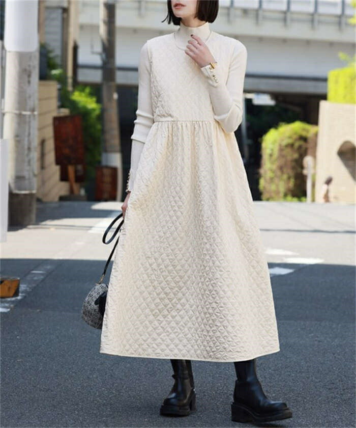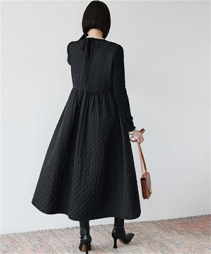 ジャンパースカート 中綿 ワンピース ホワイト ブラック