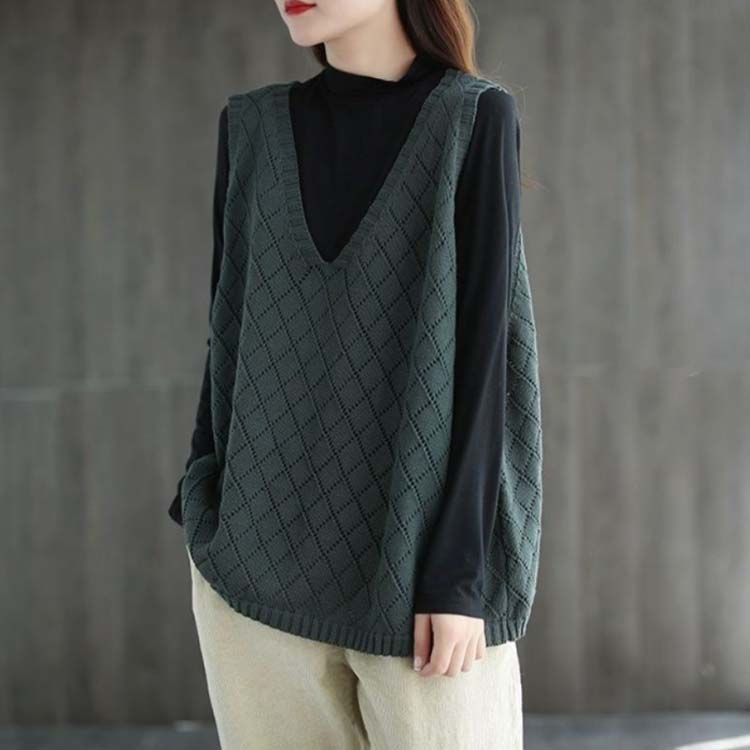 体型カバー 重ね着 40代 ベスト 春夏 トップス レディース ショート丈 プルオーバー ノースリーブ vネック レイヤード 透かし編み 薄手 カジュアル 20代 30代 ニット おしゃれ