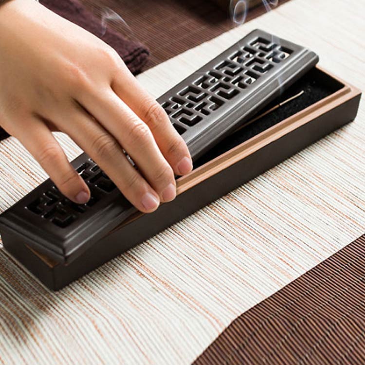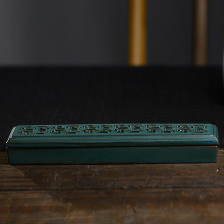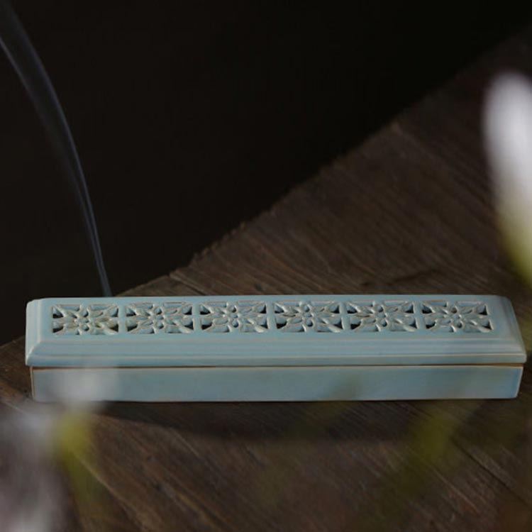 線香立て アロマ線香 お香立て 線香ケース 置き型 横置き 香炉 寝かせる線香皿 陶器 透かし彫り フタ付 スティック おしゃれ 香炉皿 小物 安全 洗浄 仏具 リラックス